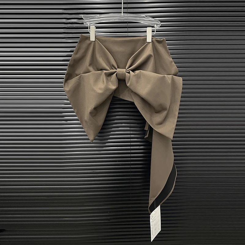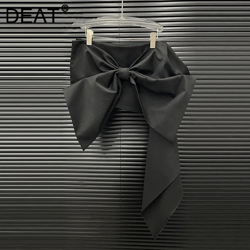 DEAT Moda Versatile Nuova Grande Bowknot Minigonna Per Le Donne di Nicchia Design A-line Gonne Corte Irregolari Femminile Alla Moda 11A05869