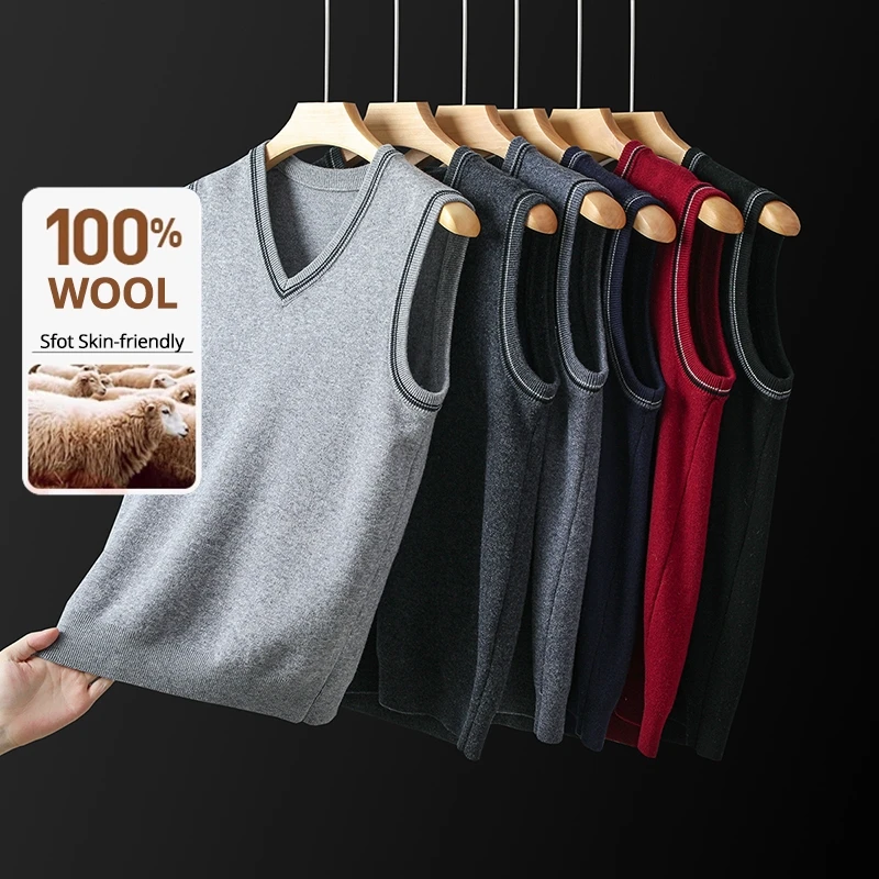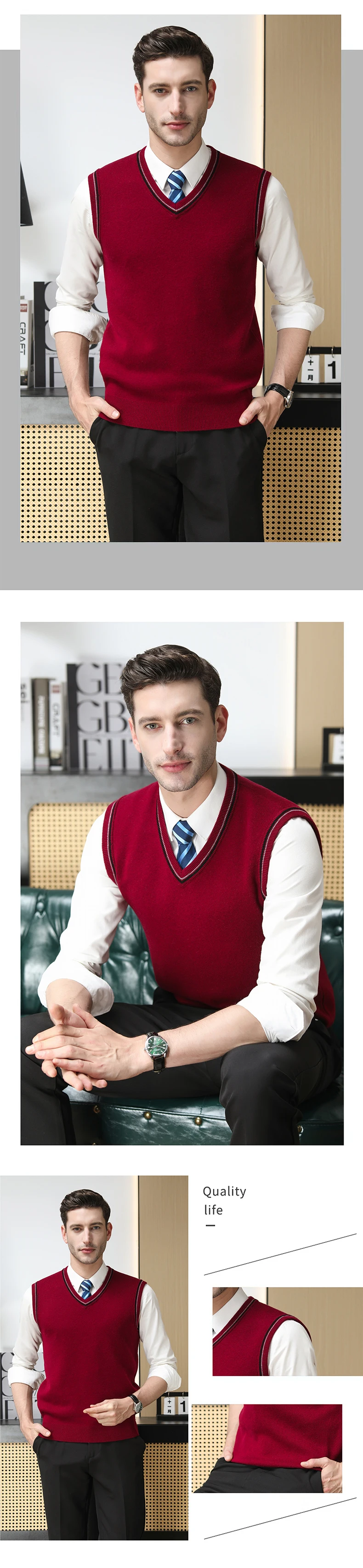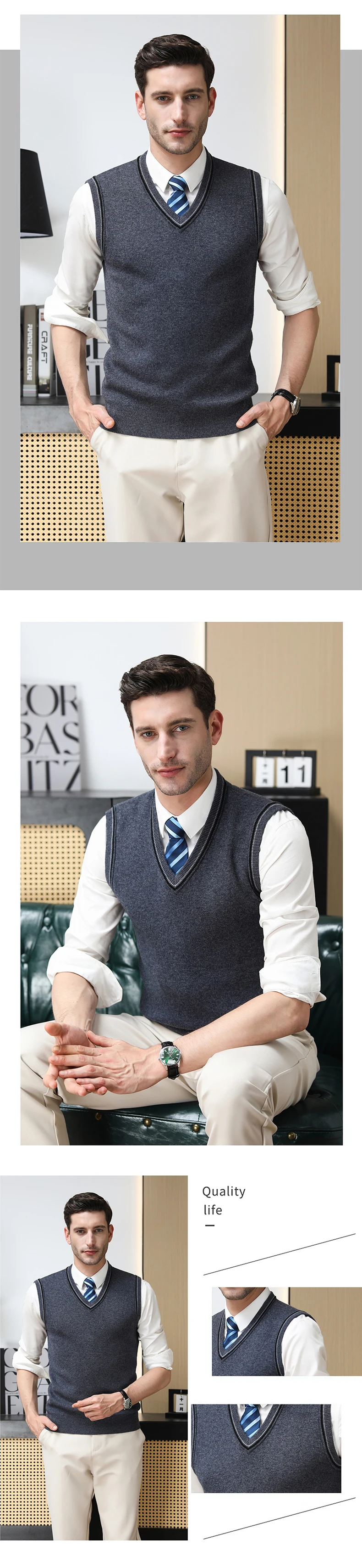 Di fascia alta 100% lana Nuovo autunno inverno marchio di moda maglia pullover maglione gilet slim fit scollo a V senza maniche abbigliamento casual da uomo