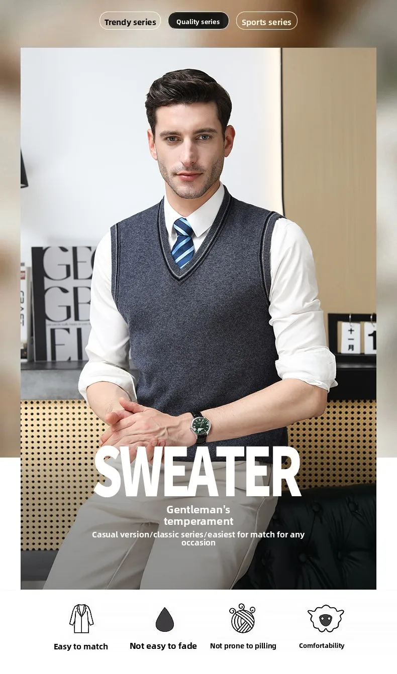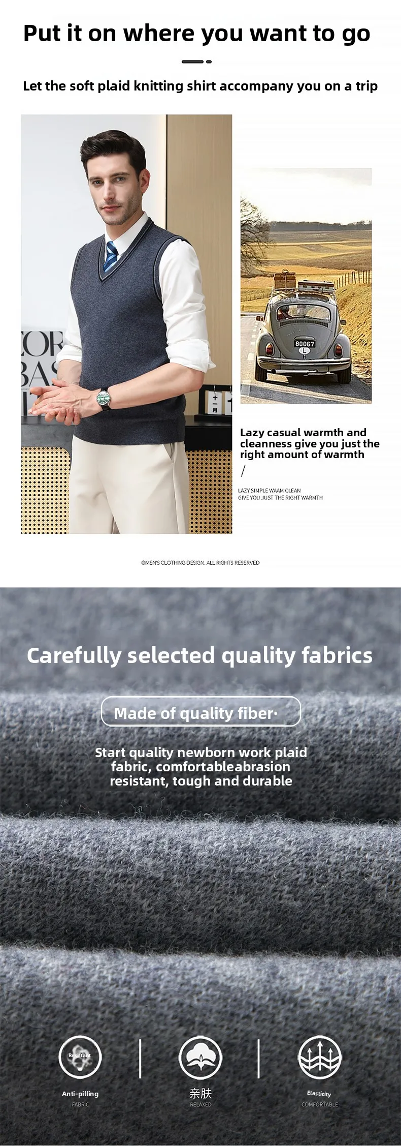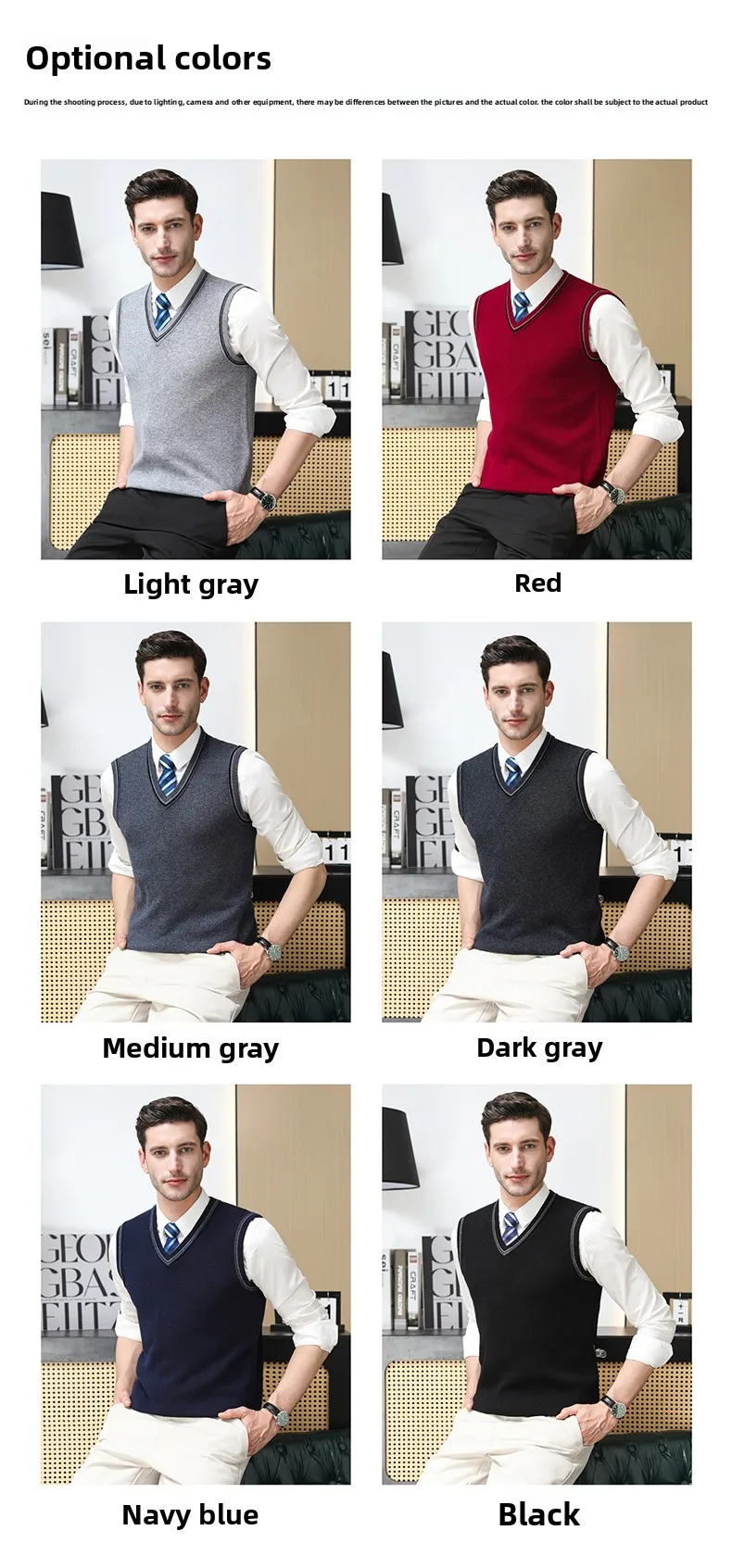 Di fascia alta 100% lana Nuovo autunno inverno marchio di moda maglia pullover maglione gilet slim fit scollo a V senza maniche abbigliamento casual da uomo