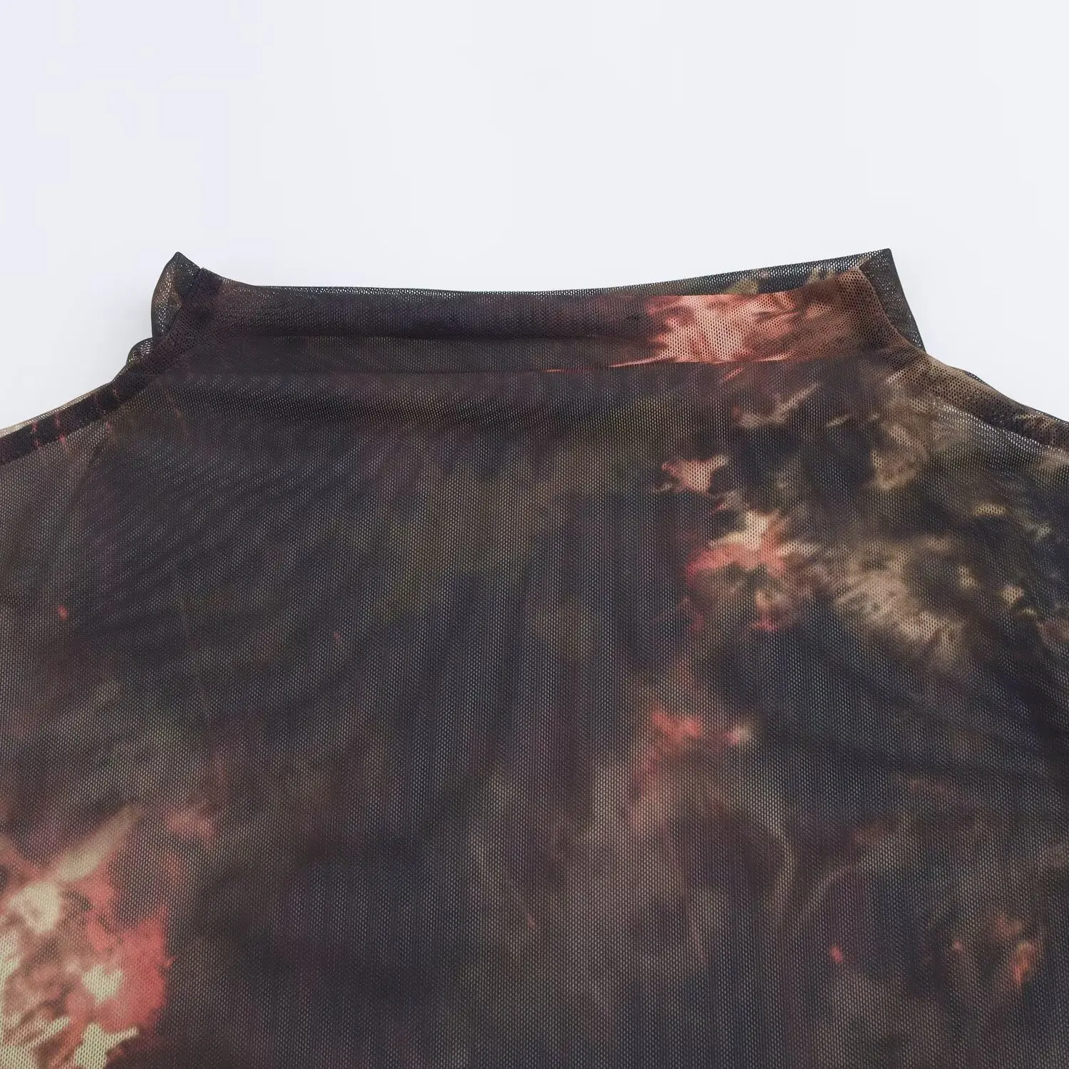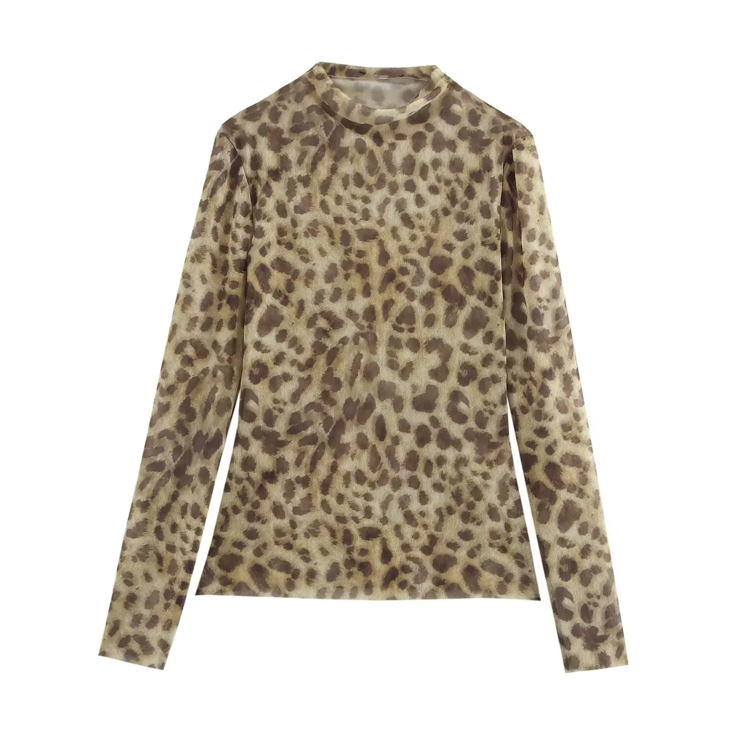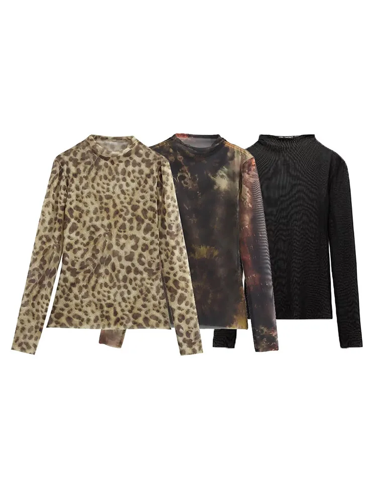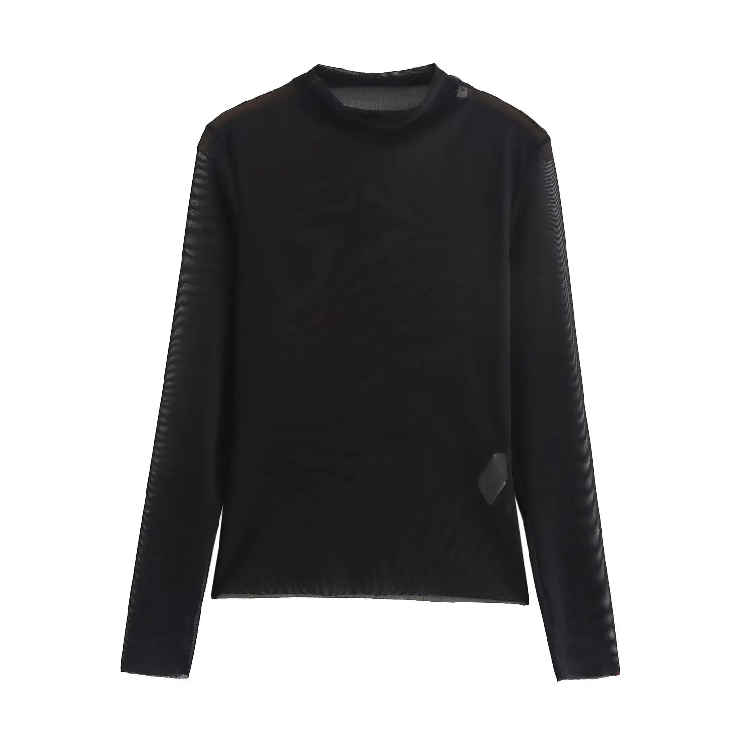 DiYiG Donne 2024 Autunno di Nuovo Modo di Stile Pigro Serigrafia Stampa T-Shirt A Maniche Lunghe Chic Mezza Collo Alto Casual Top Mujer