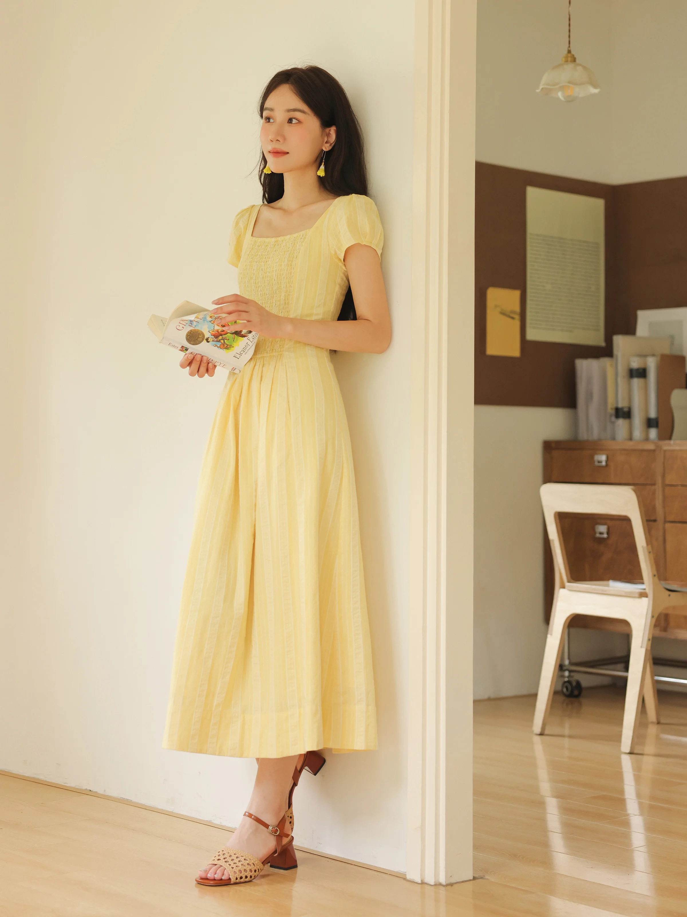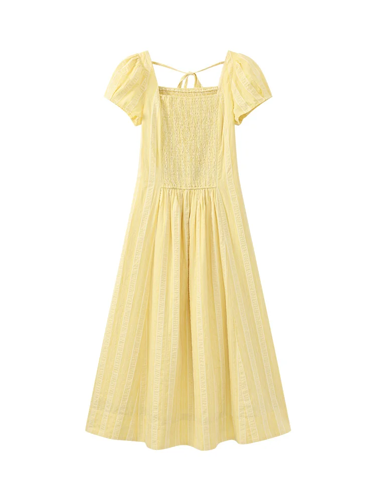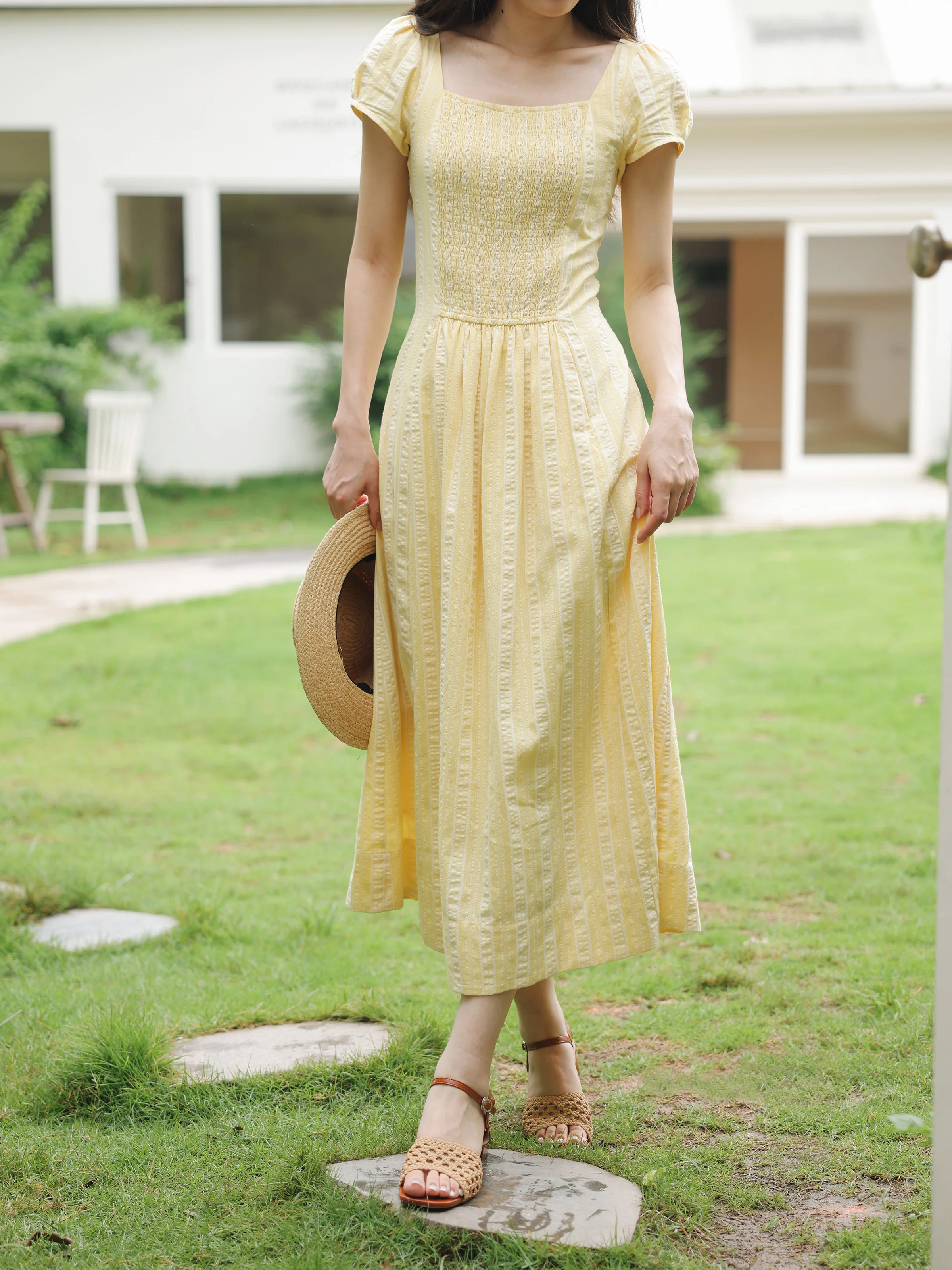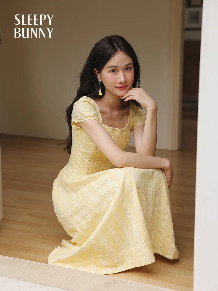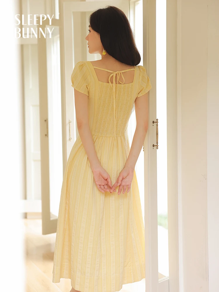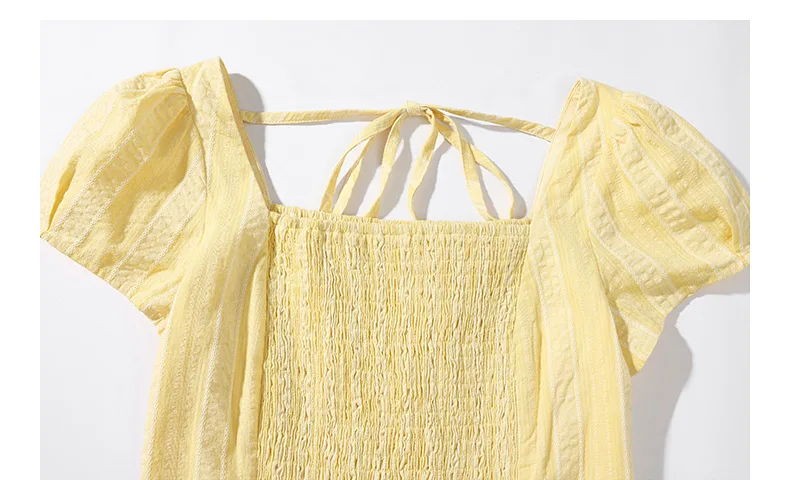 Dolce abito vintage con maniche a sbuffo da donna, scollo quadrato estivo, vita arricciata, linea ad A, abito lungo casual morbido e leggero, look quotidiano