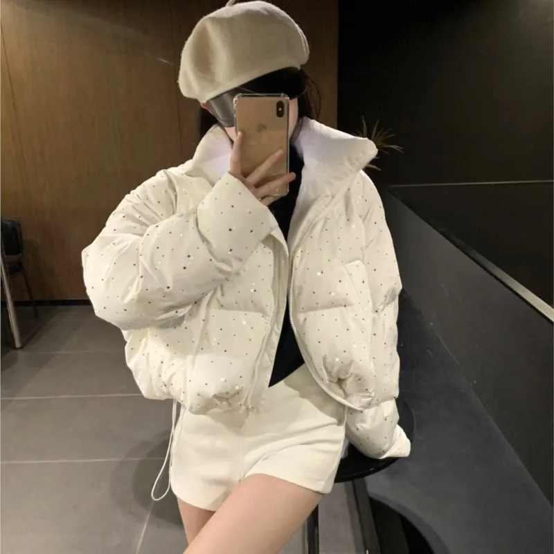 3 recensioni per Donna autunno inverno elegante piumino cappotti chic corto con cerniera Parka cappotto moda coreana giacca con colletto alla coreana capispalla solido