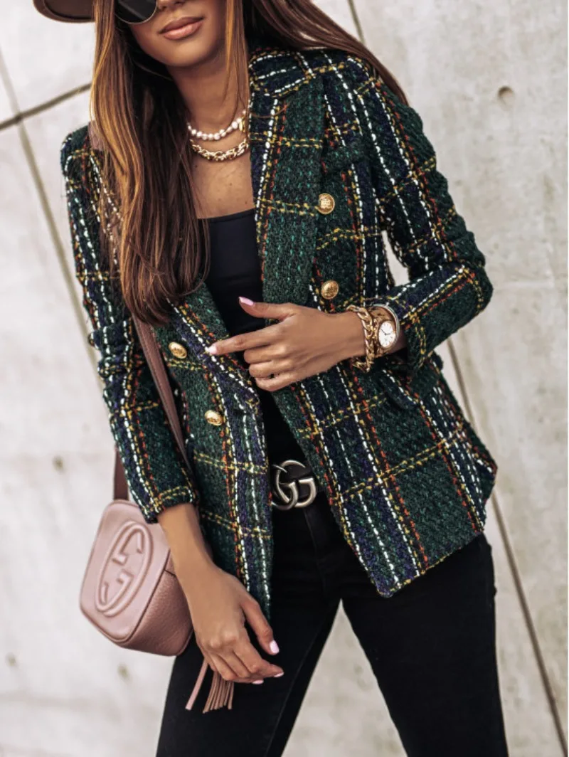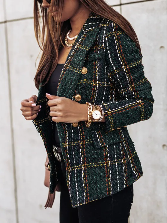 Donna New Vintage manica lunga doppio petto giacca scozzese cappotto tasche con patta bottoni casual giacca autunnale capispalla femminile