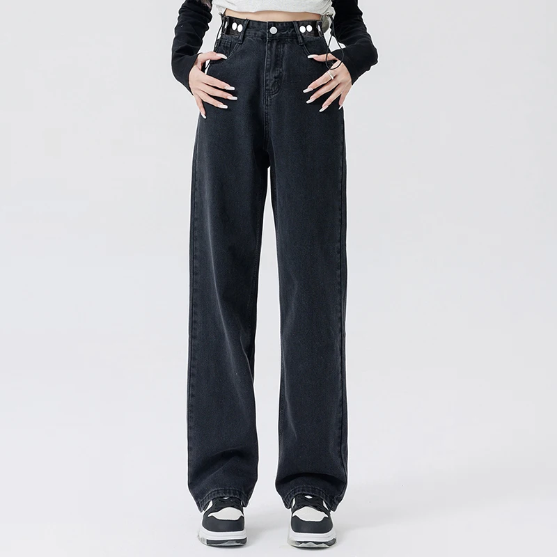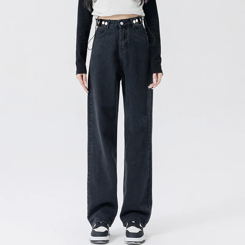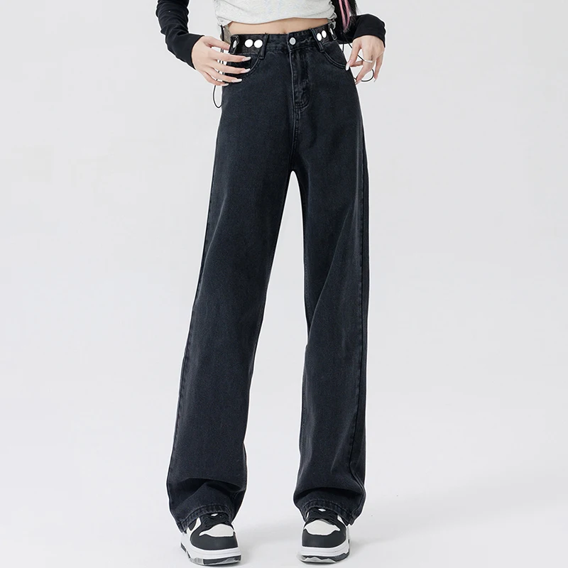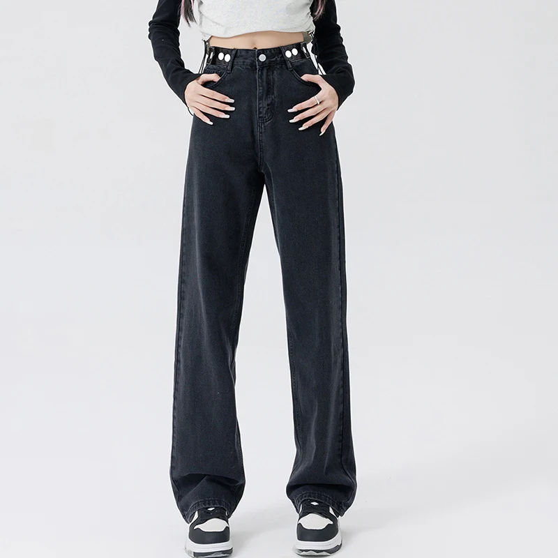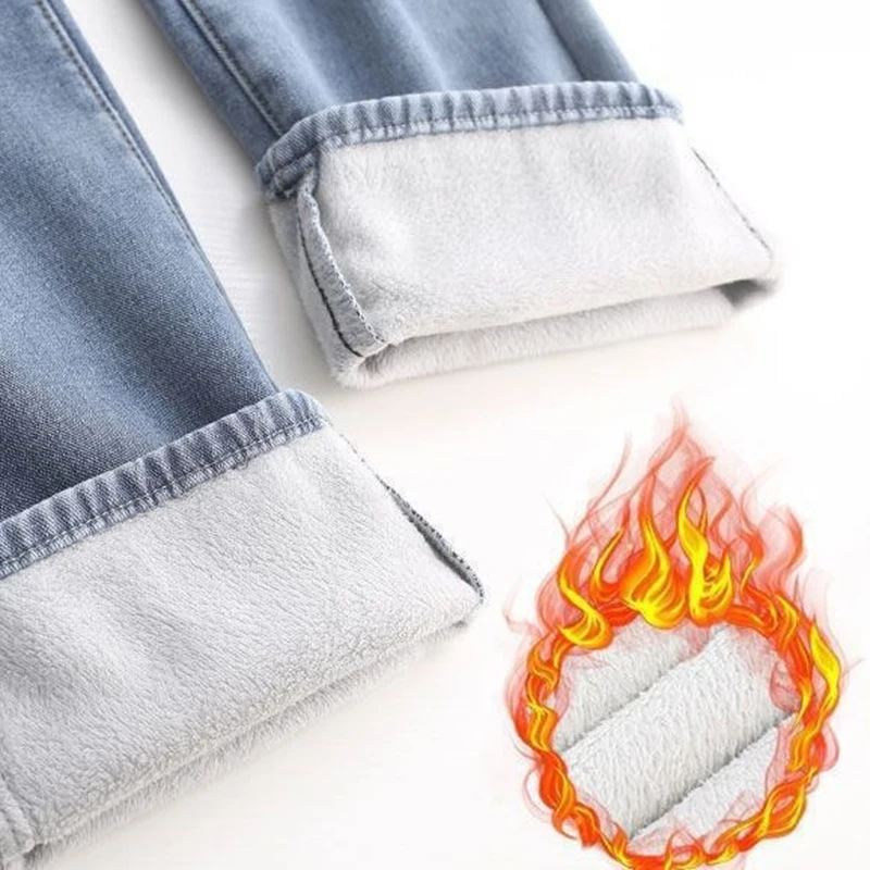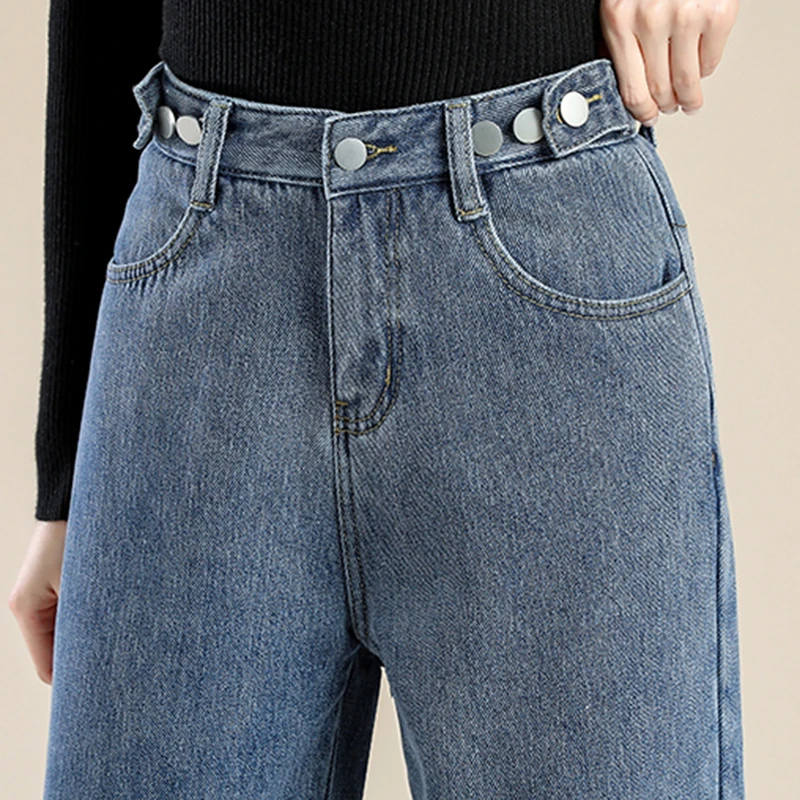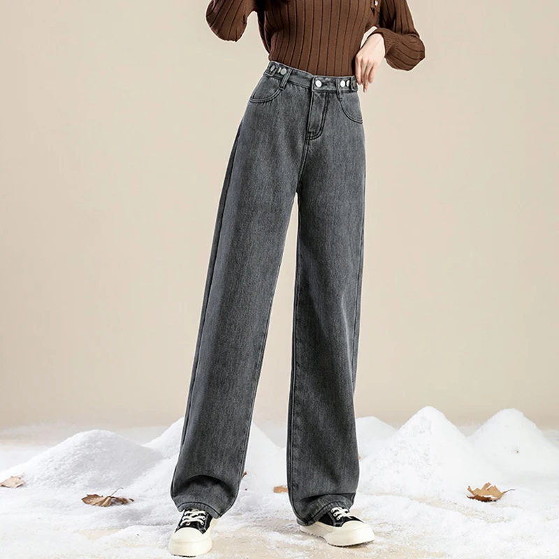 2 recensioni per Donna Vita alta Streetwear Jeans addensati Pantaloni larghi moda femminile Lady Nero Grigio Azzurro Blu Punk Pantaloni in denim termico