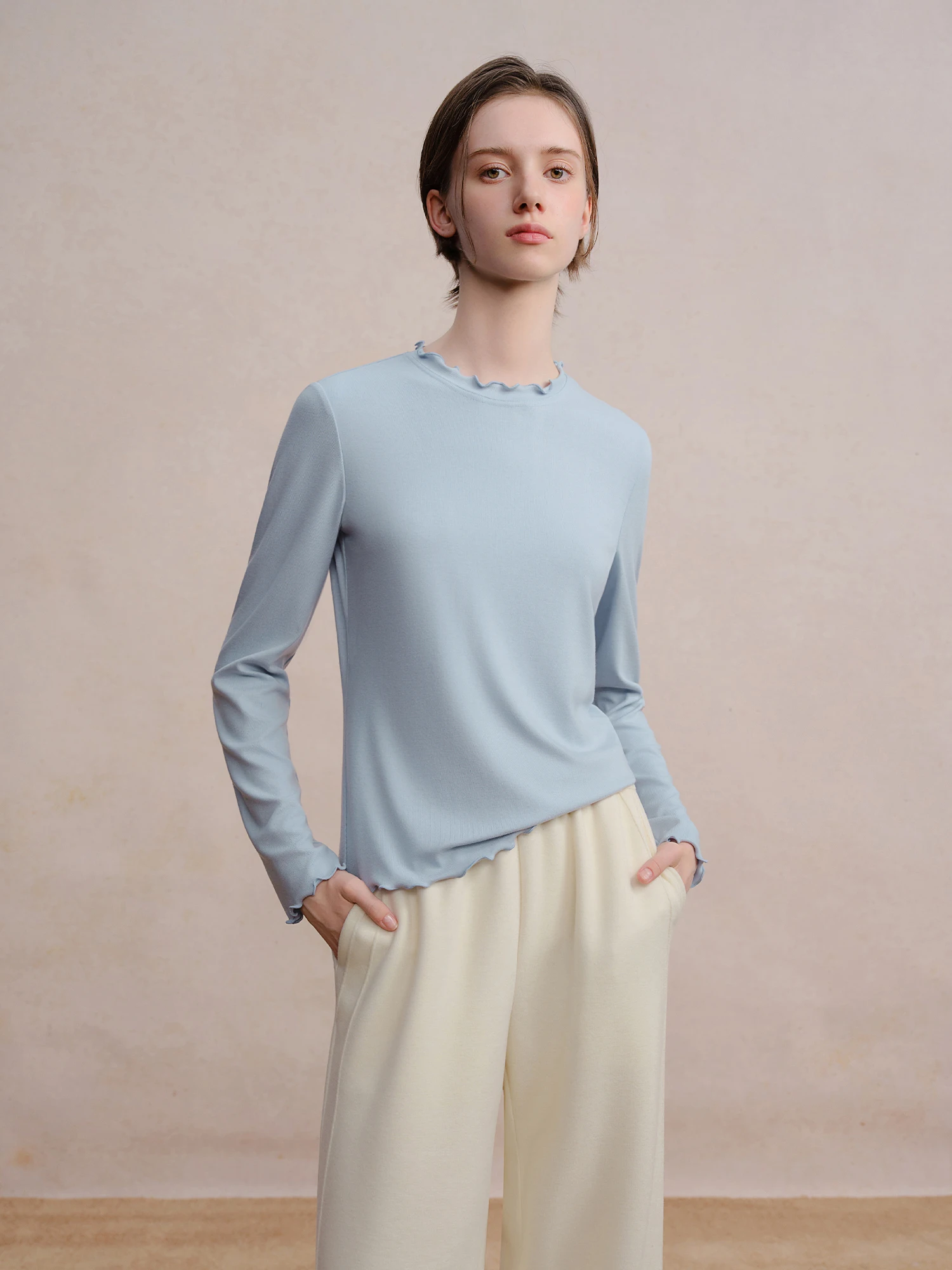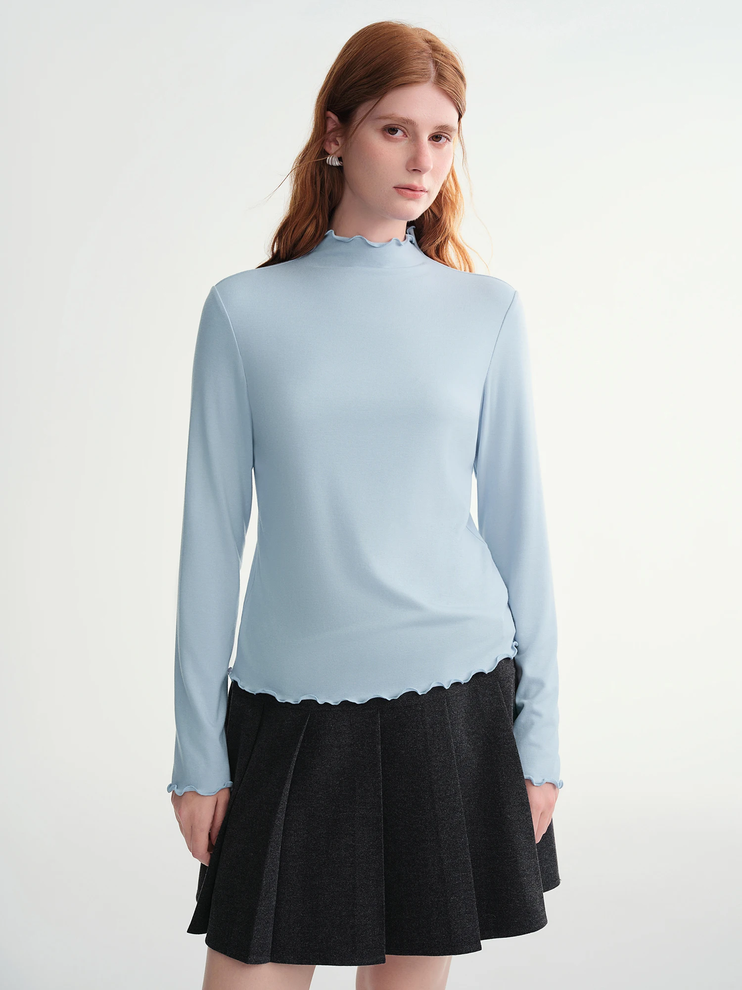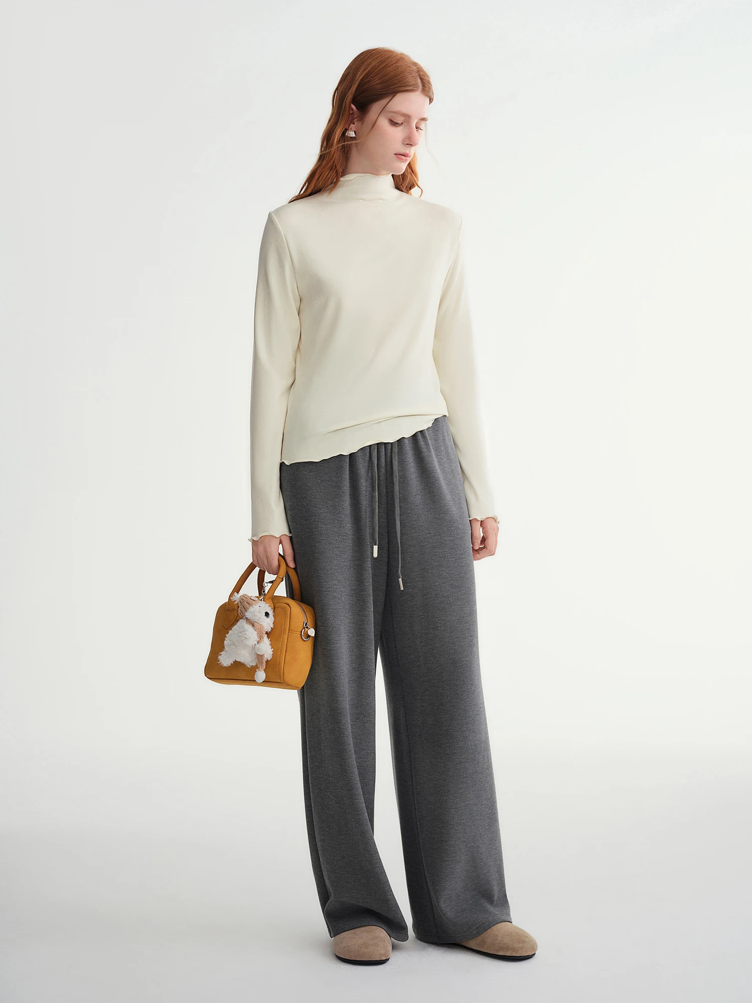 DUSHU T-shirt in lana autoriscaldante Collo semi-alto Maglia morbida Bralette palangari da donna Autunno Inverno Pullover curvy in tinta unita