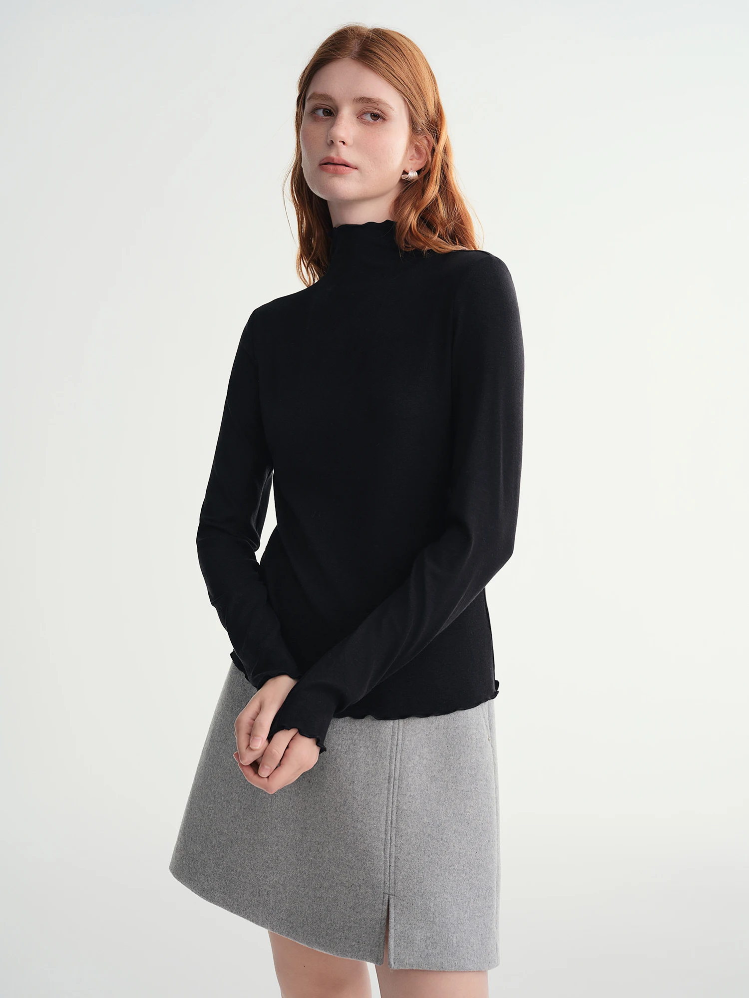 1 recensione per DUSHU T-shirt in lana autoriscaldante Collo semi-alto Maglia morbida Bralette palangari da donna Autunno Inverno Pullover curvy in tinta unita