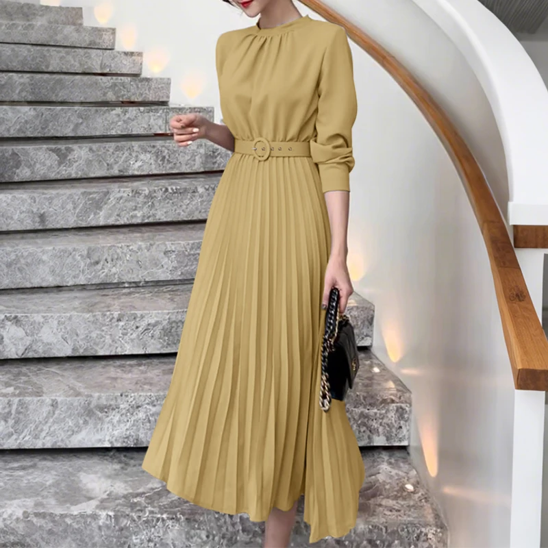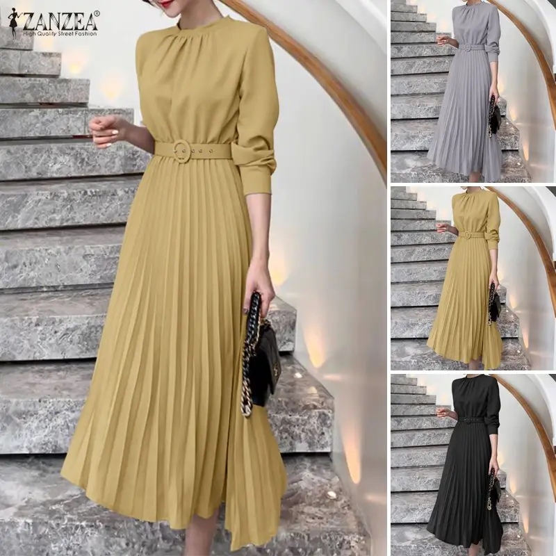 Recensisci per primo “Elegante autunno abito a linea ZANZEA abiti da donna da ufficio 2025 elegante O collo manica lunga lavoro Midi Vestido vestito estivo a pieghe solido”