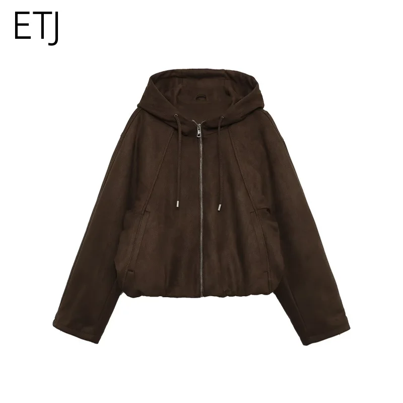 Recensisci per primo “ETJ 2025 inverno nuova moda donna pelle scamosciata effetto texture bomber con cappuccio giacca casual versione ampia” Annulla risposta