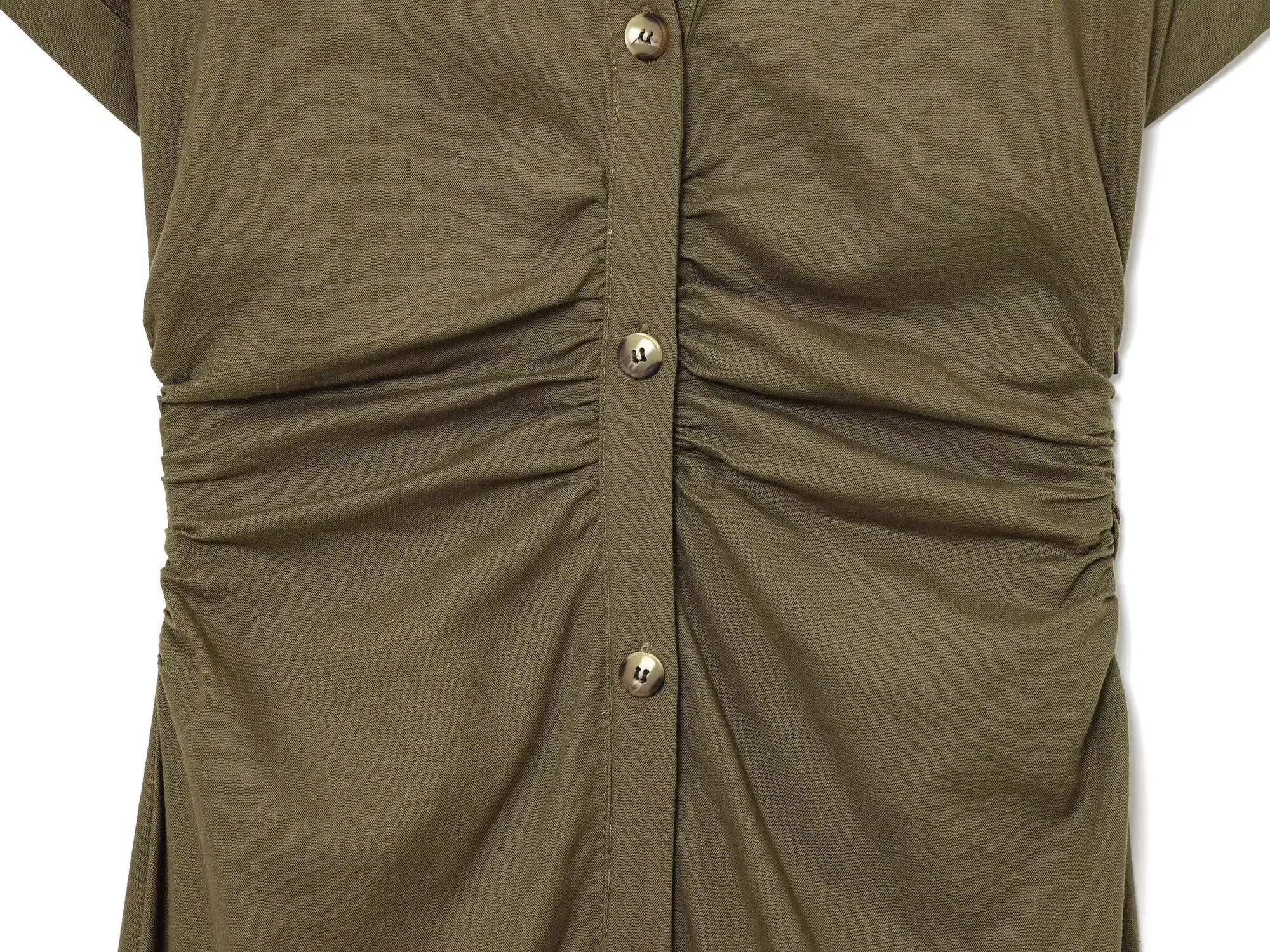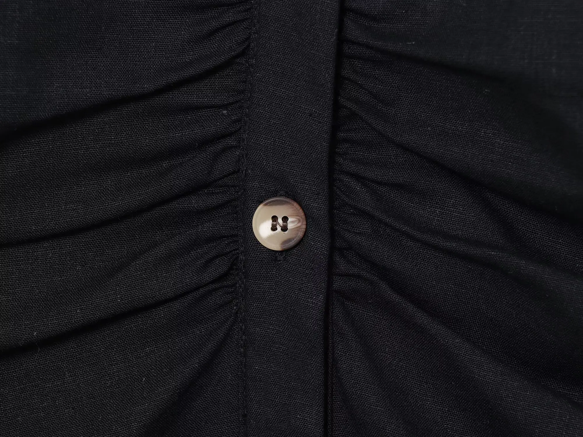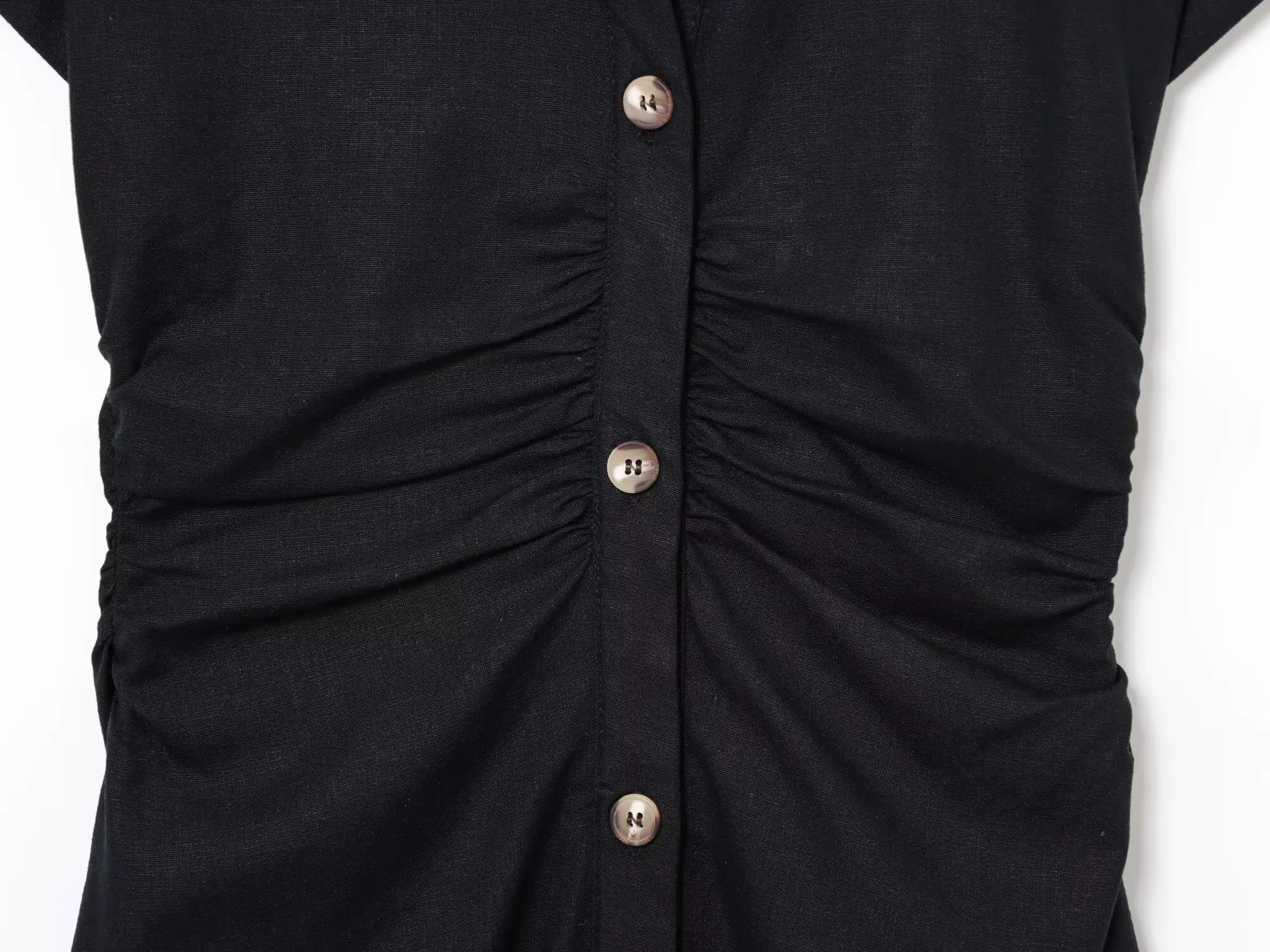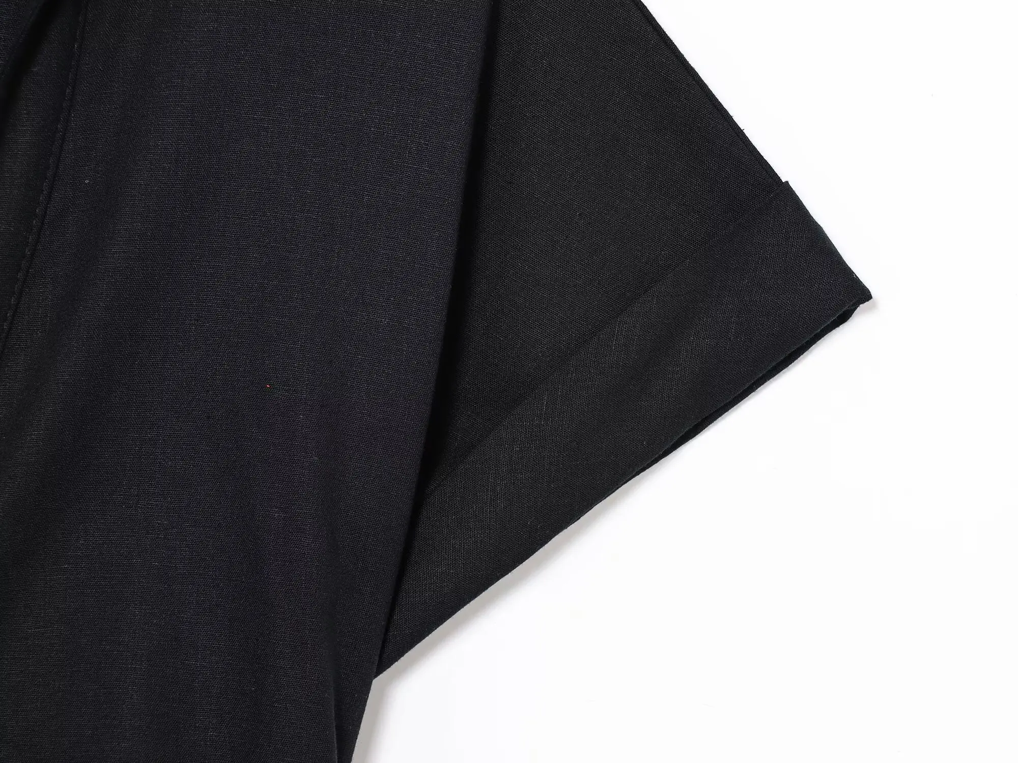 al tatto dona una sensazione di lino. Non c’è elasticità e i bottoni non sono funzionali, quindi ho avuto problemi a indossarlo. Comunque, un vestito delizioso, e la spedizione è stata impeccabile.