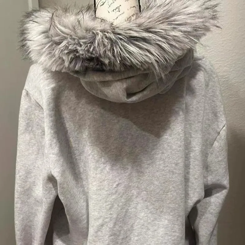 Recensisci per primo “Felpa con cappuccio con cerniera con stampa di lettere americane per donna Street Hip-hop Abbigliamento casual Felpa con cappuccio con giunture in pelliccia retrò Y2K 2025 Nuovo” Annulla risposta