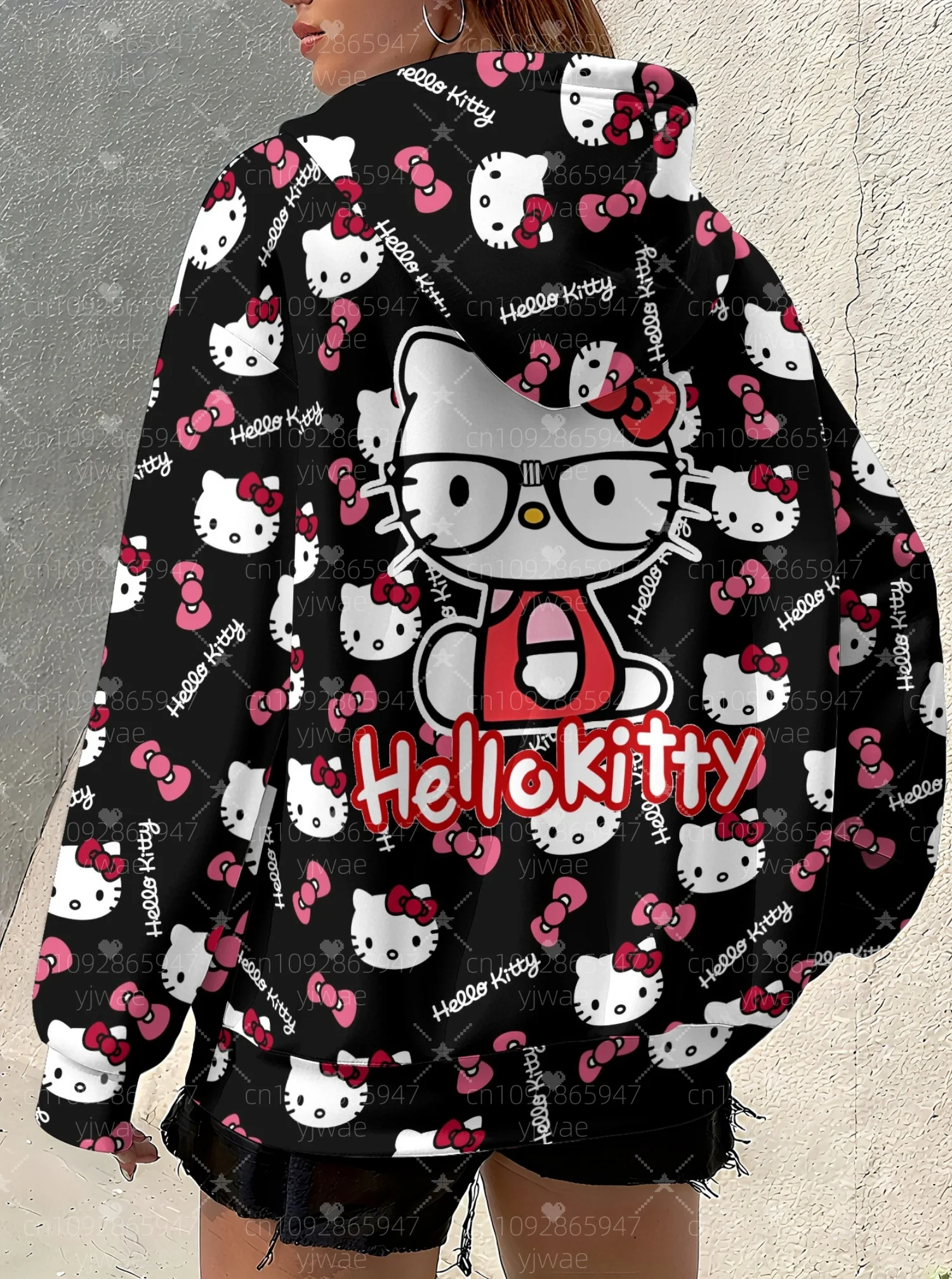 Felpa con cappuccio da donna autunno 2025 felpa con stampa floreale Hello Kitty allentata all’aperto Felpa con cappuccio All-Match Femmine Ragazza Top Abbigliamento donna