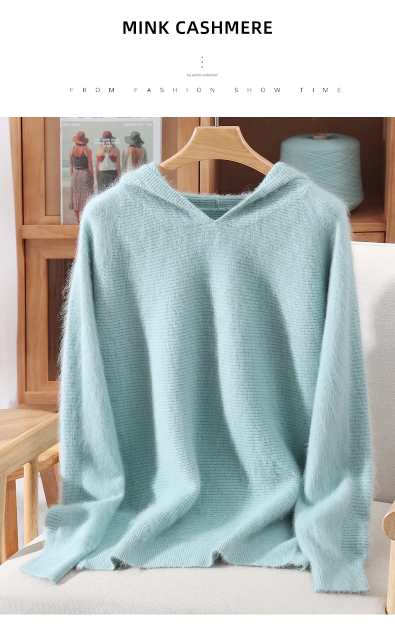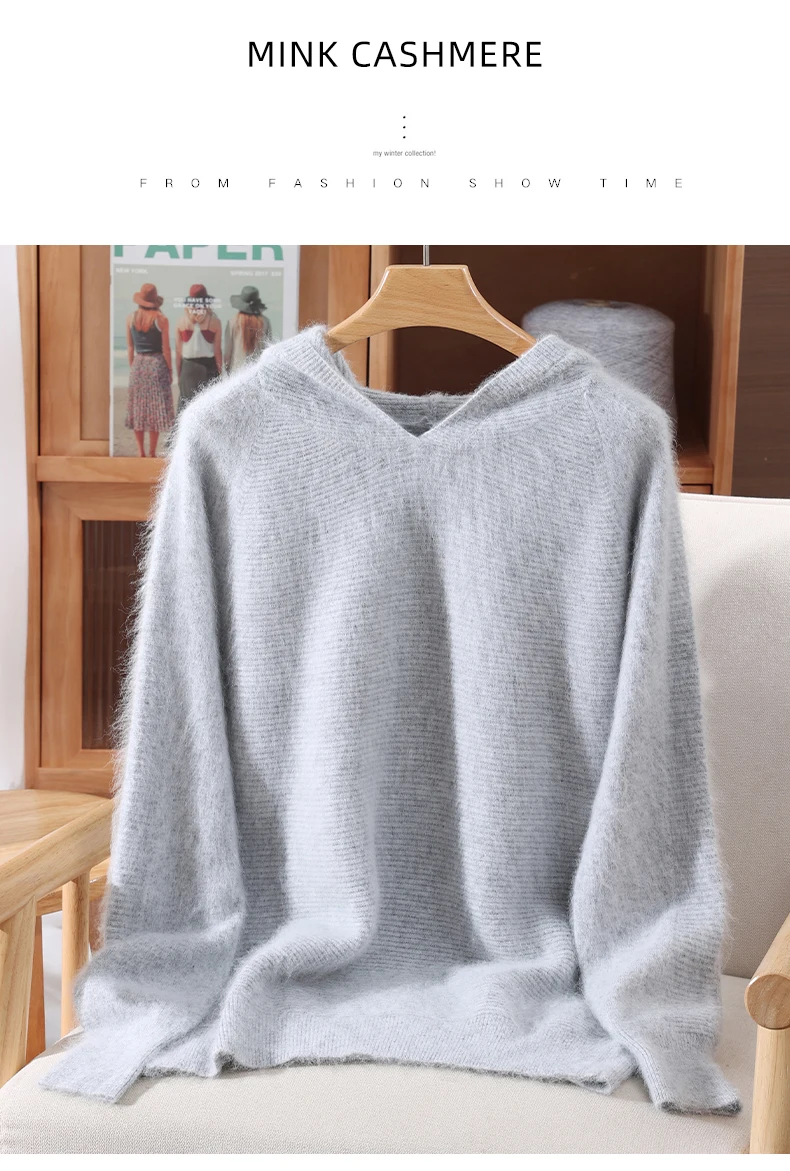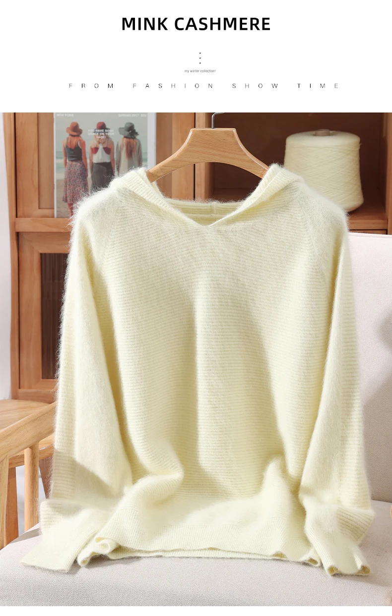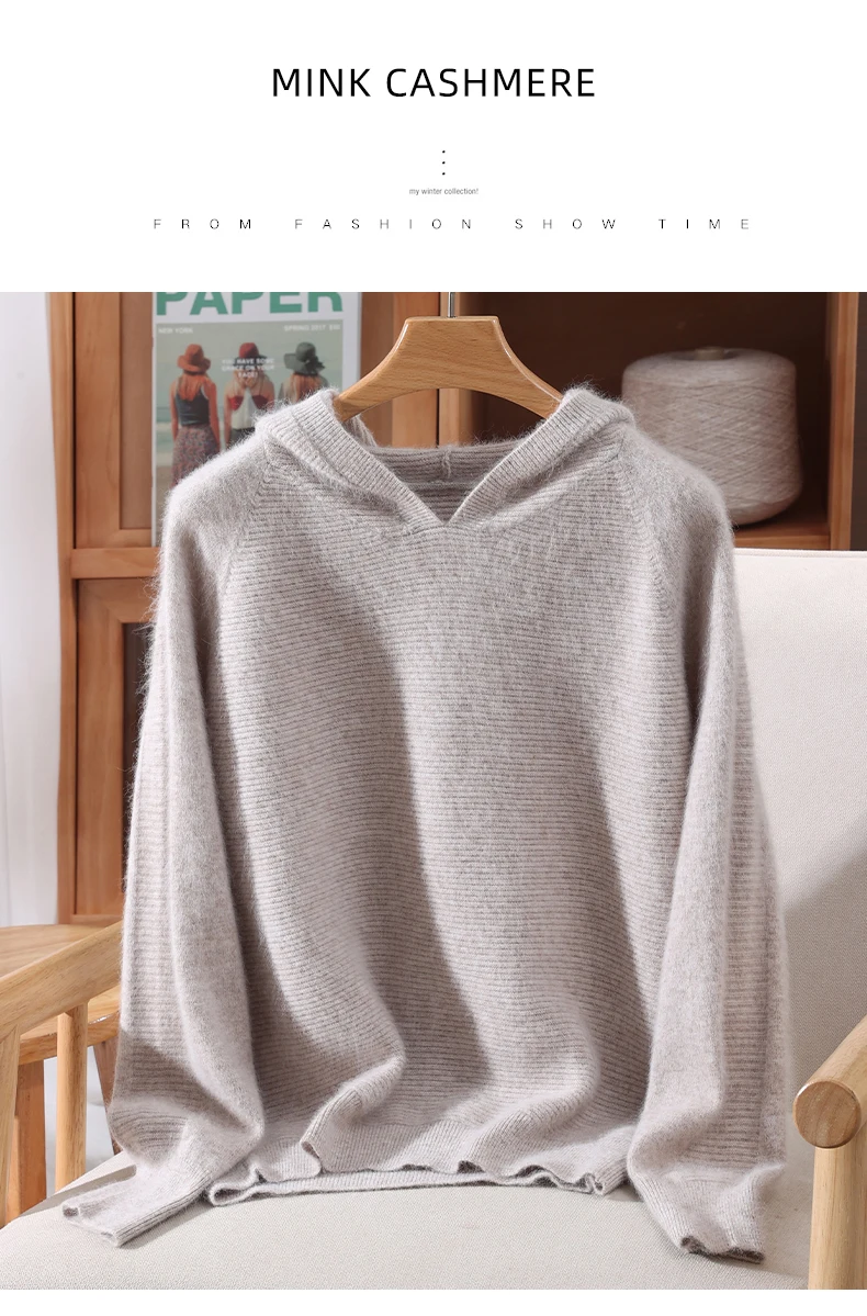 Felpa con cappuccio da donna, nuovi maglioni autunnali e invernali da donna, pullover con cappuccio lavorato a maglia in cashmere visone, top maglione elegante alla moda