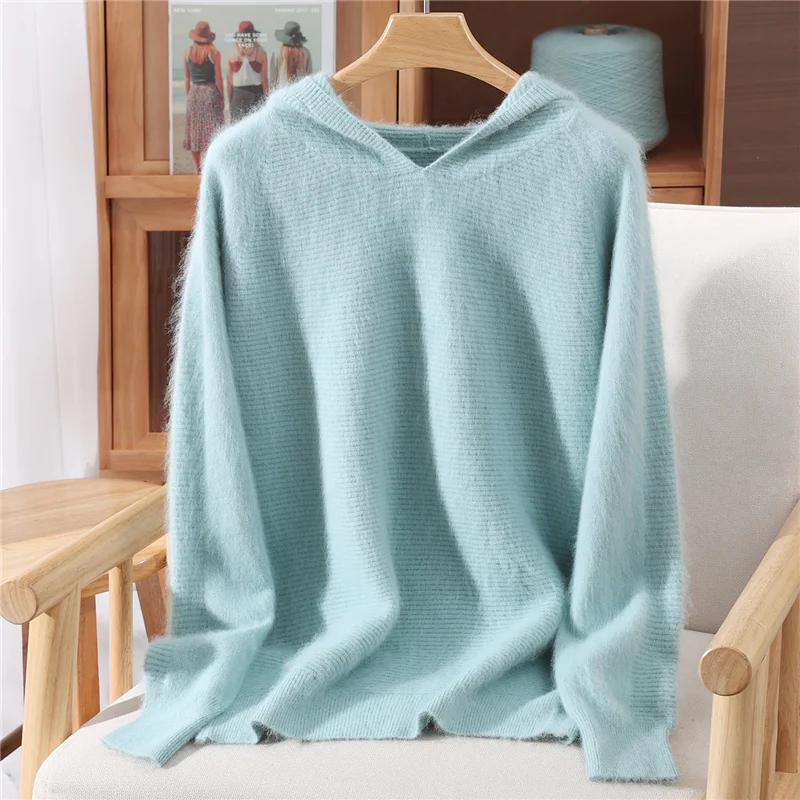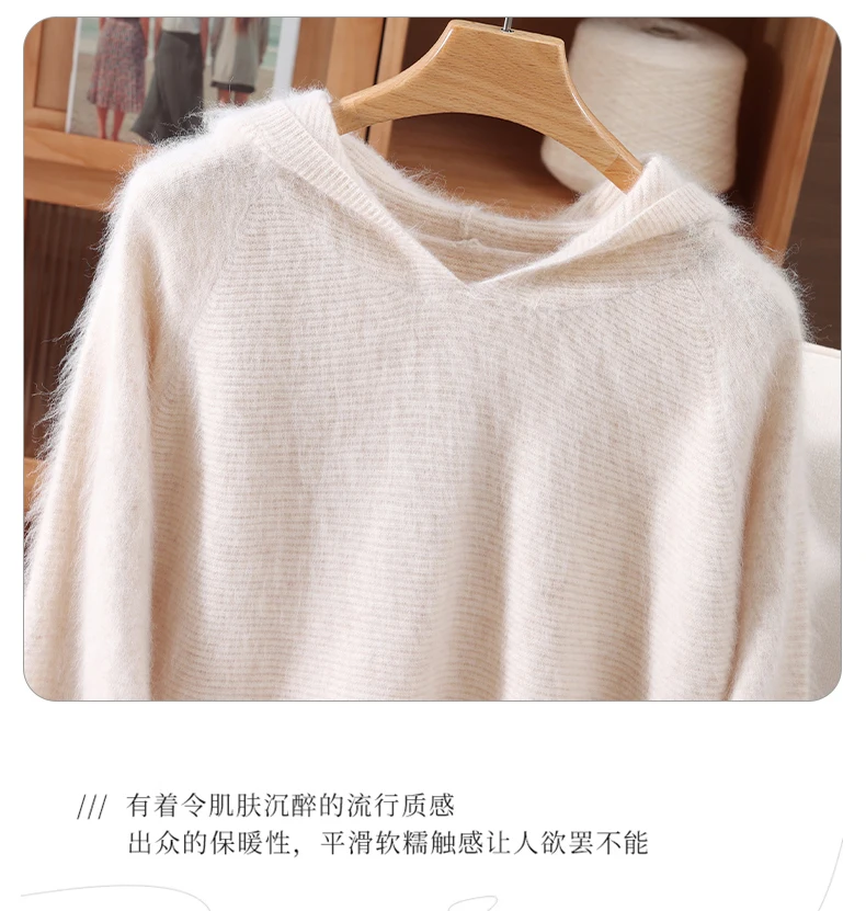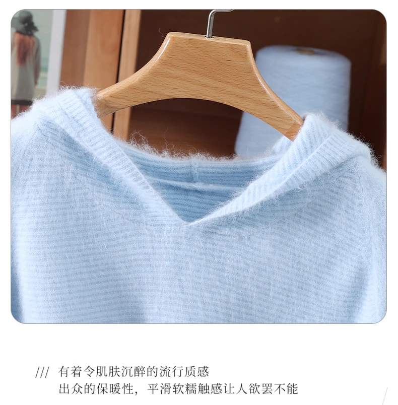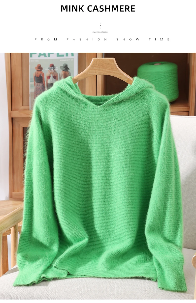 Felpa con cappuccio da donna, nuovi maglioni autunnali e invernali da donna, pullover con cappuccio lavorato a maglia in cashmere visone, top maglione elegante alla moda