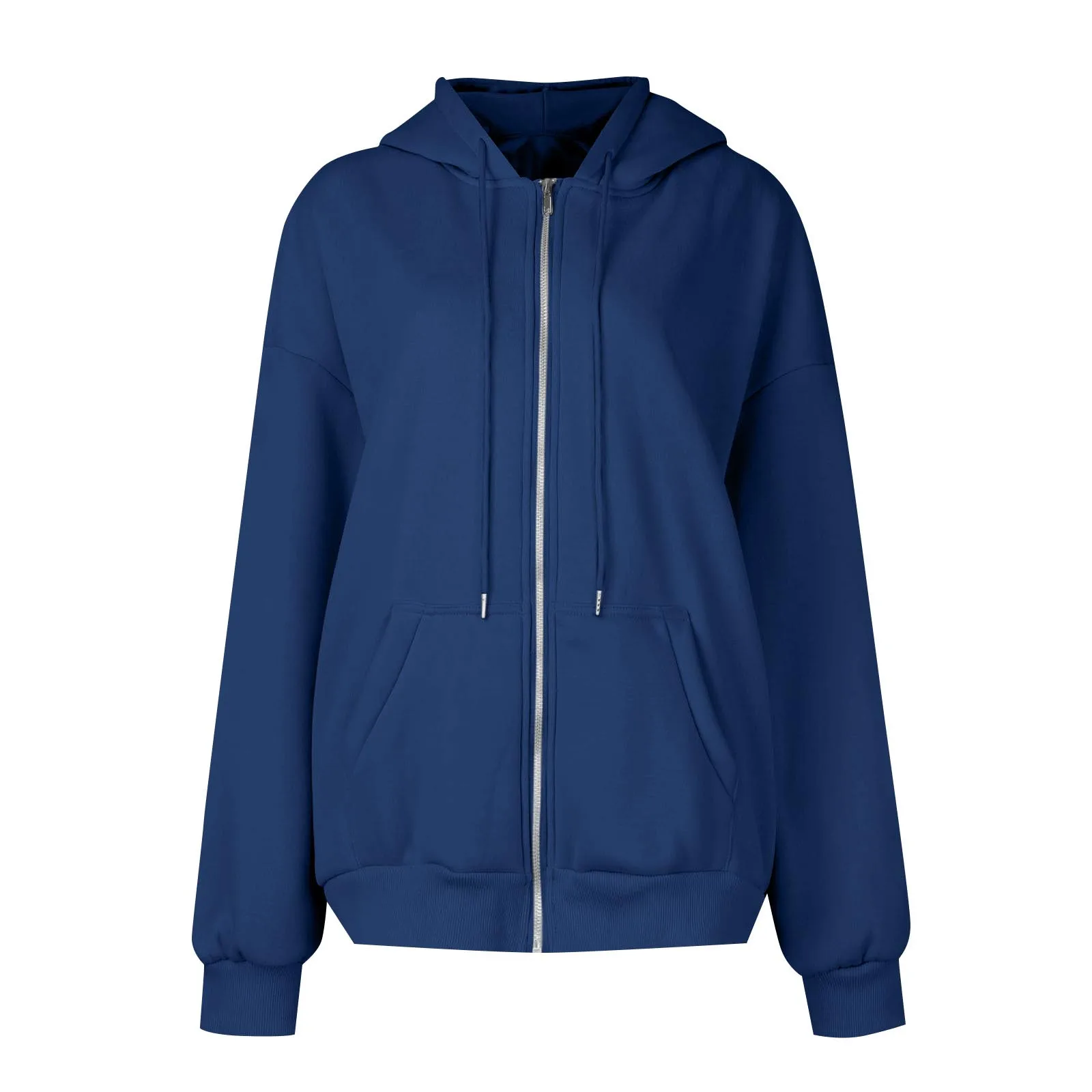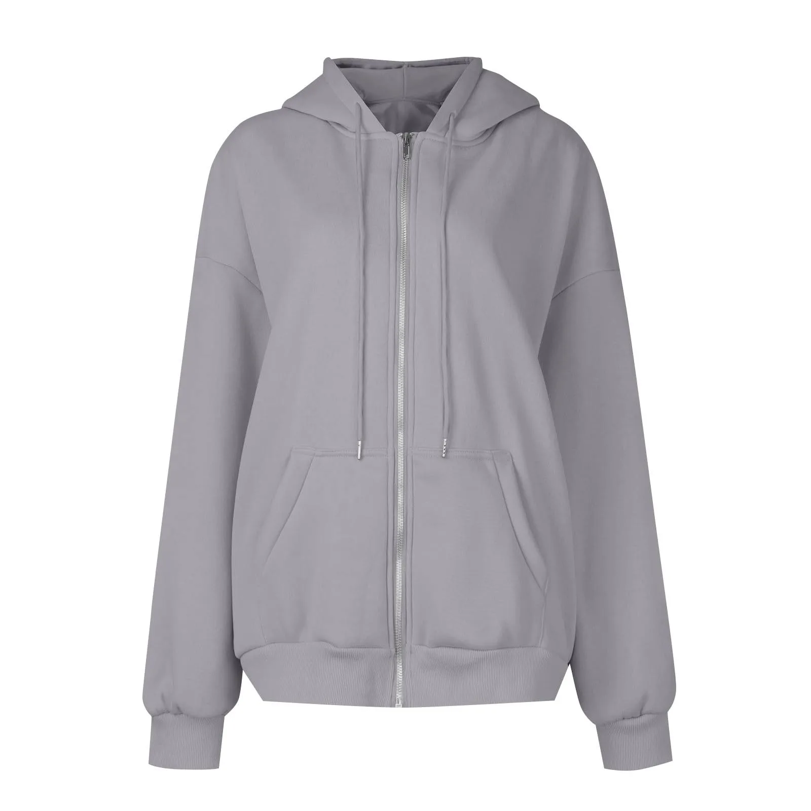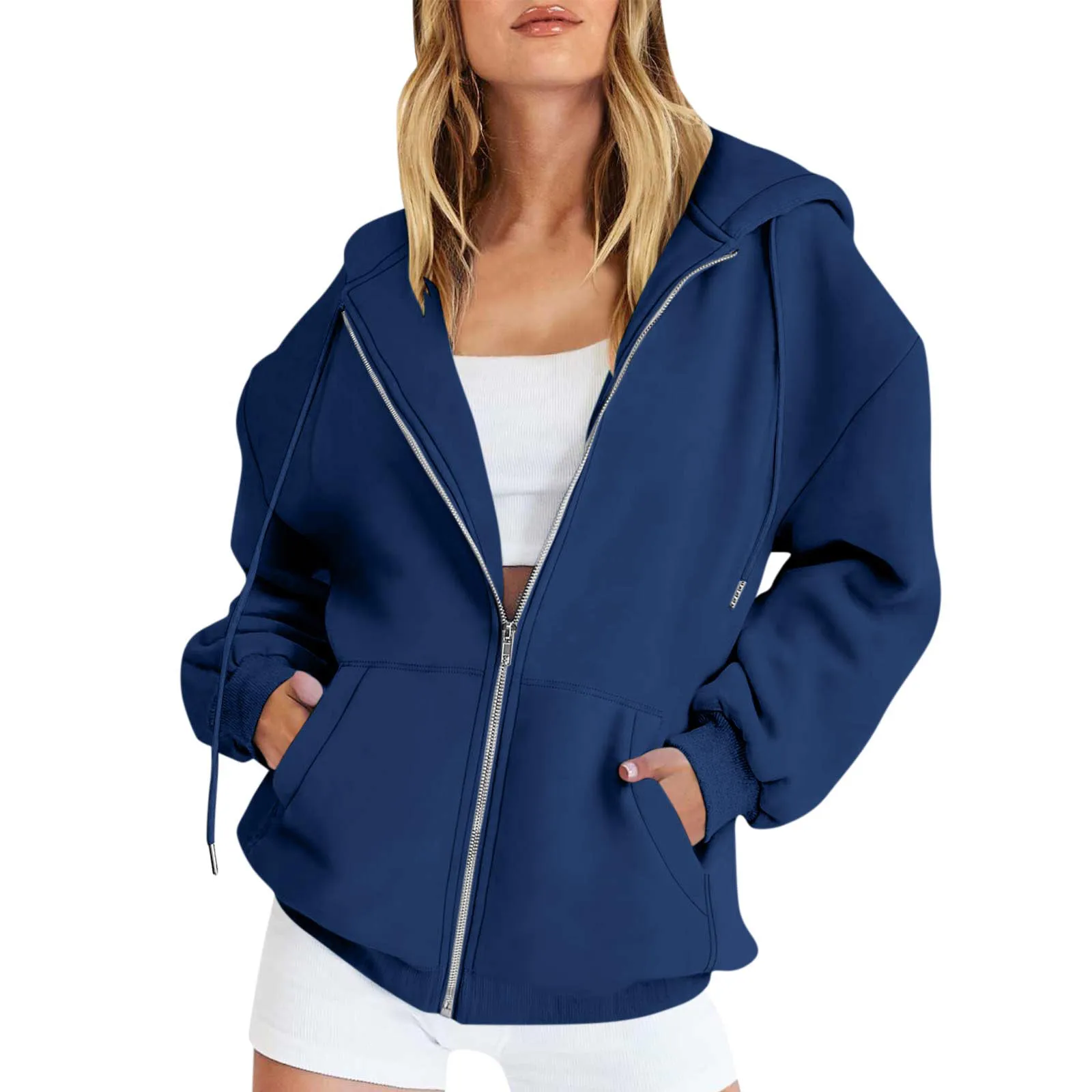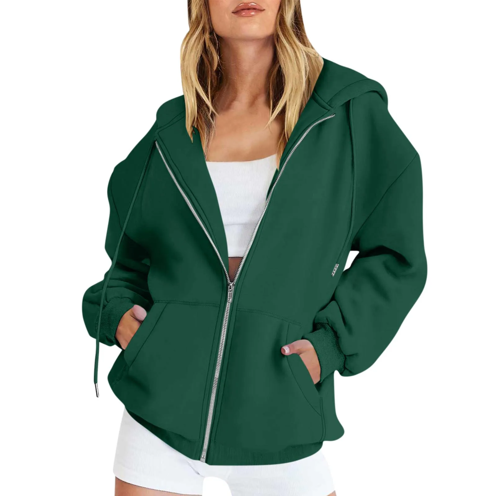 Felpa con cappuccio da donna Street Costume Running felpe moda Casual tinta unita a maniche lunghe con cerniera abbigliamento sportivo con cappuccio