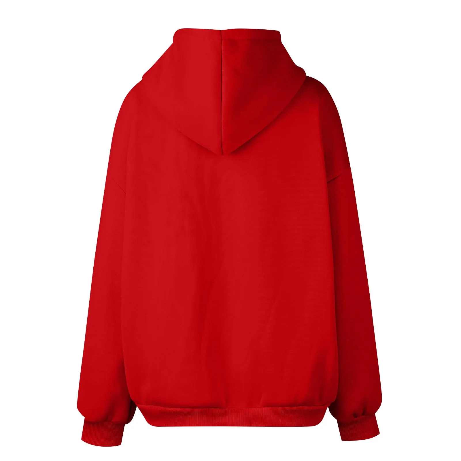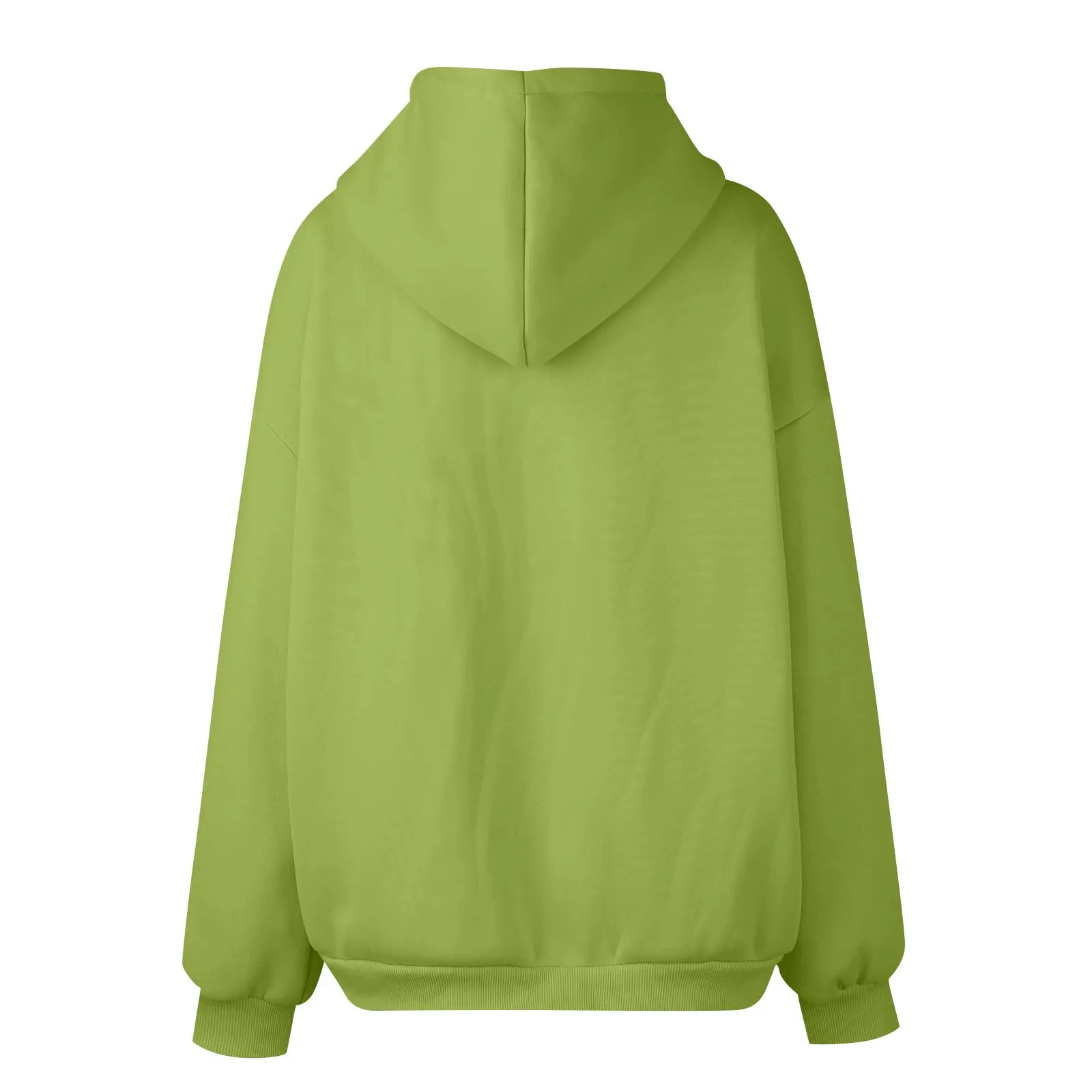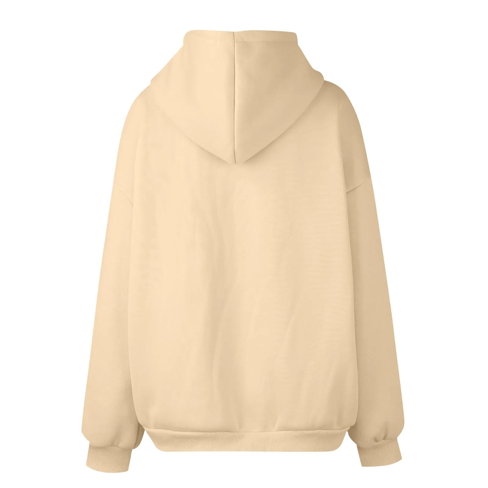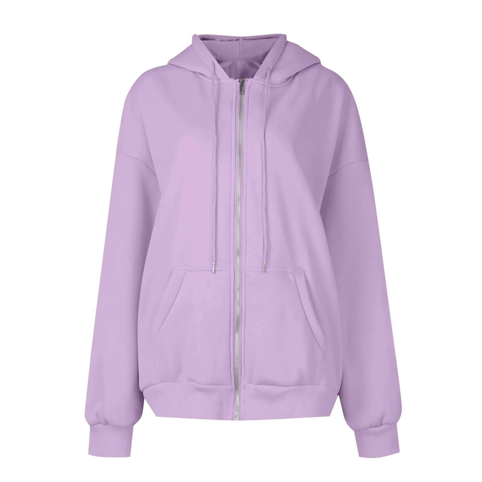 Women’s Casual Fashion Solid Color Long Sleeved Zippered Hooded Sweatshirt