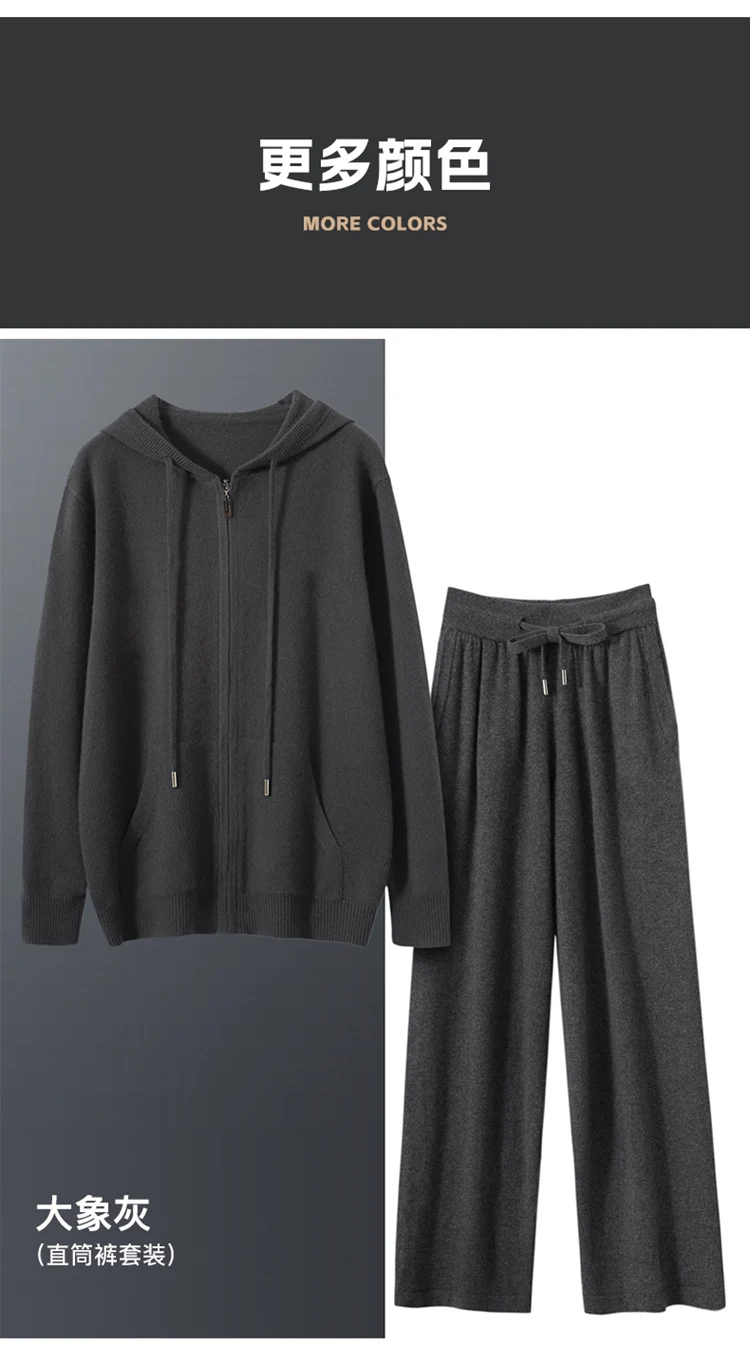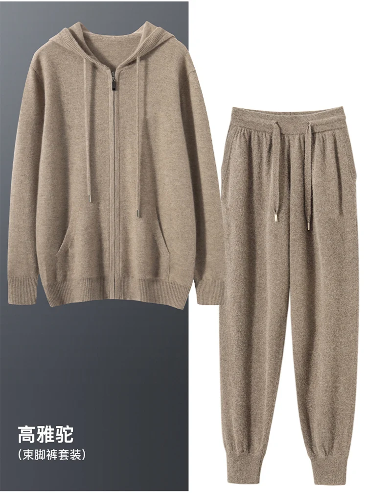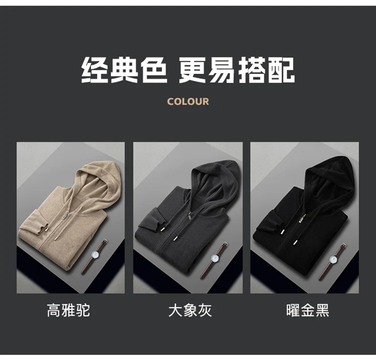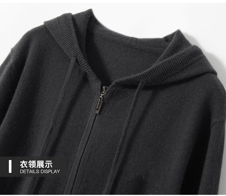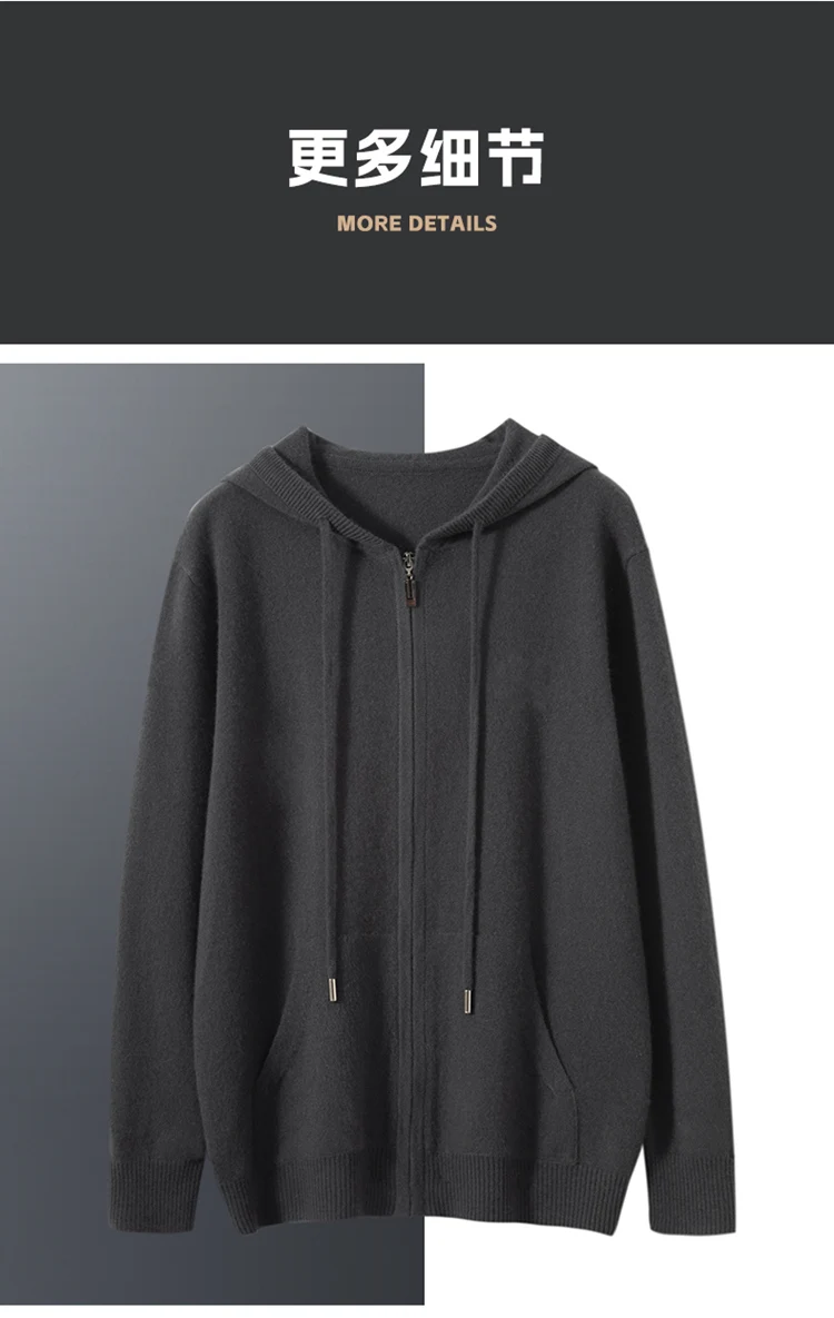 Felpa con cappuccio da uomo in puro cashmere al 100% in due pezzi, tuta sportiva per il tempo libero, moda business di fascia alta per l’autunno e l’inverno
