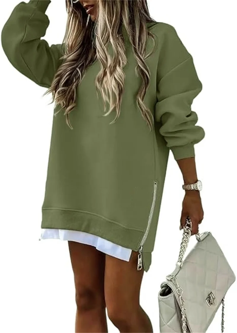 Felpa da donna primavera autunno moda splicing design con cerniera laterale girocollo maniche lunghe top irregolari di media lunghezza