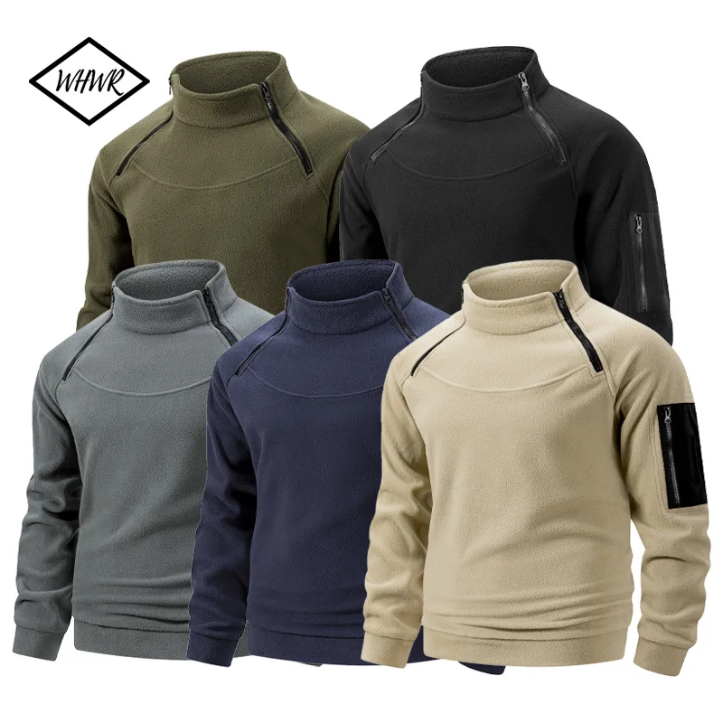 Felpa militare da uomo invernale in pile con cerniera pullover moda uomo tinta unita allentato agnello giacca spessa abbigliamento uomo S-XXXL