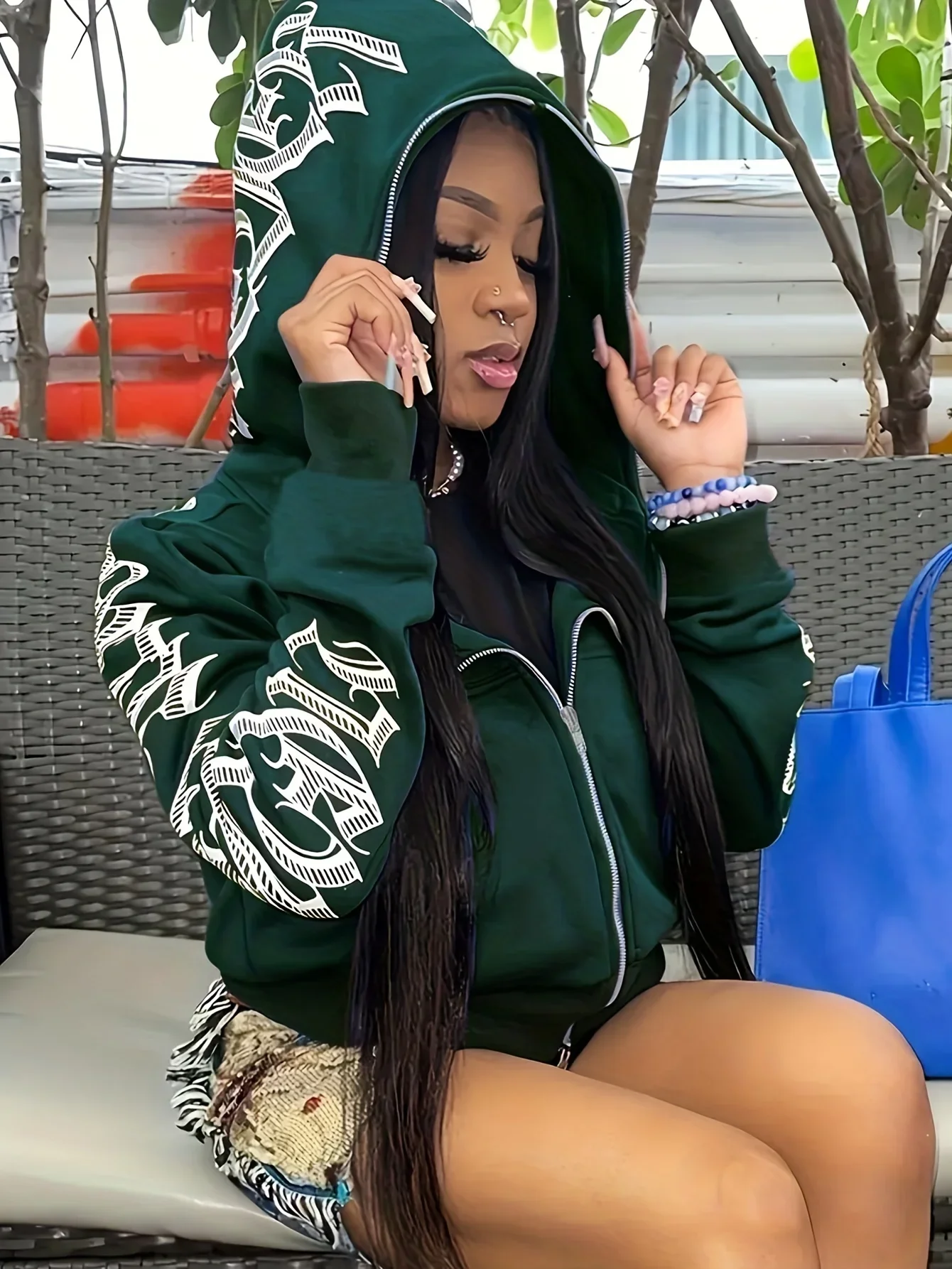 Felpe con cappuccio con zip a maniche lunghe con stampa di lettere, felpa punk gotica Cyber Y2K, abbigliamento da donna