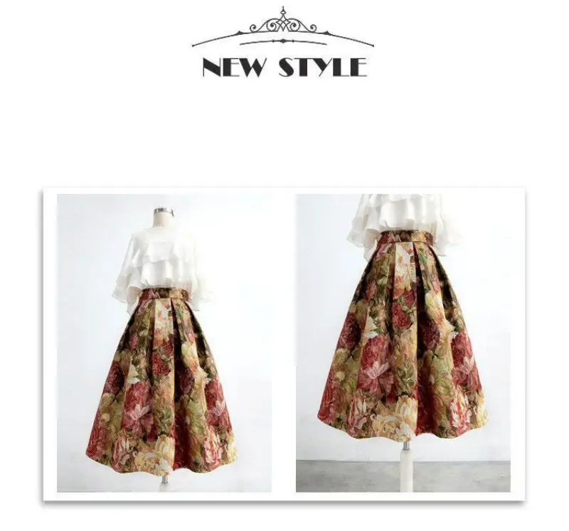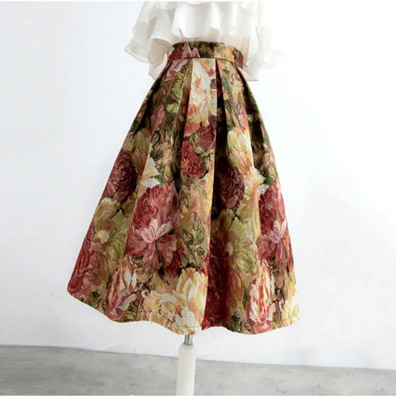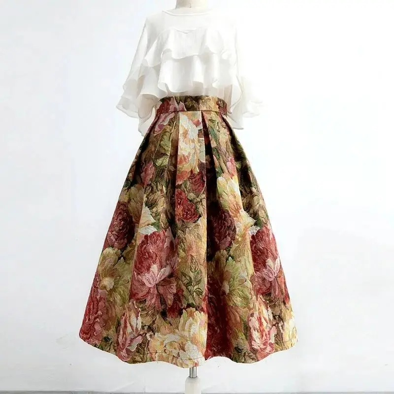 Floreale elegante Chic a vita alta abito da ballo a-line gonna allentata da donna gonne lunghe al ginocchio per abbigliamento donna moda 2024