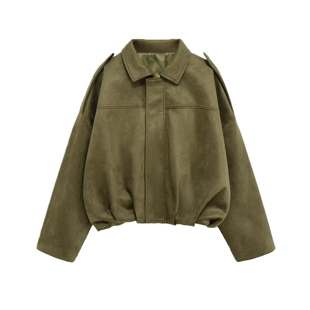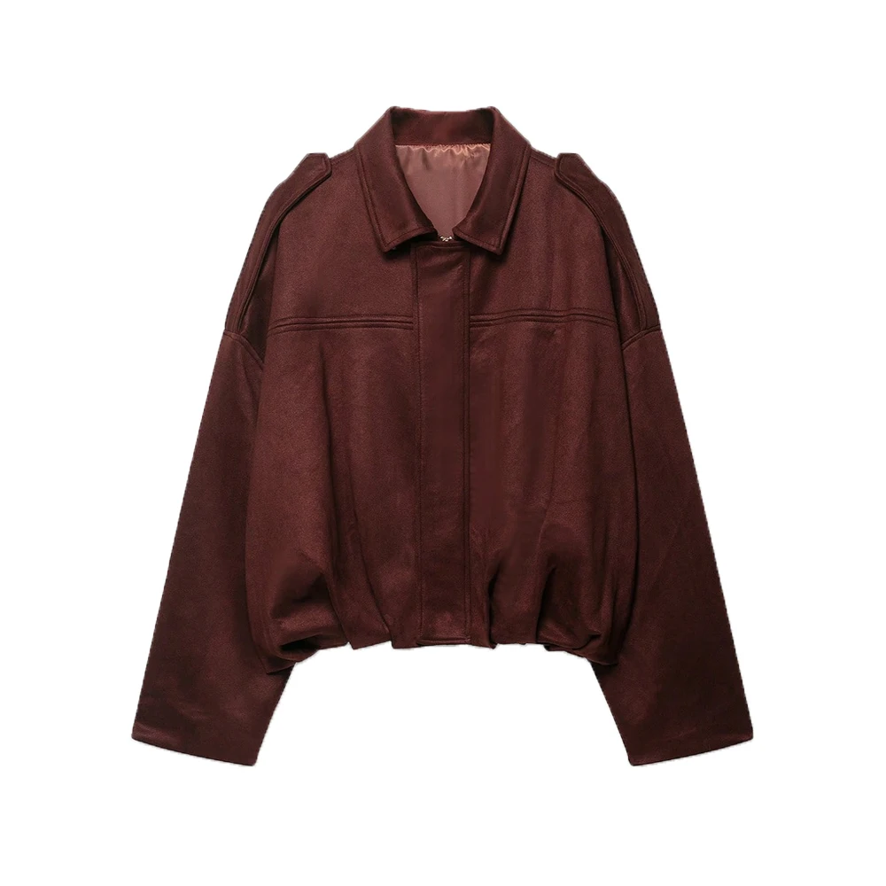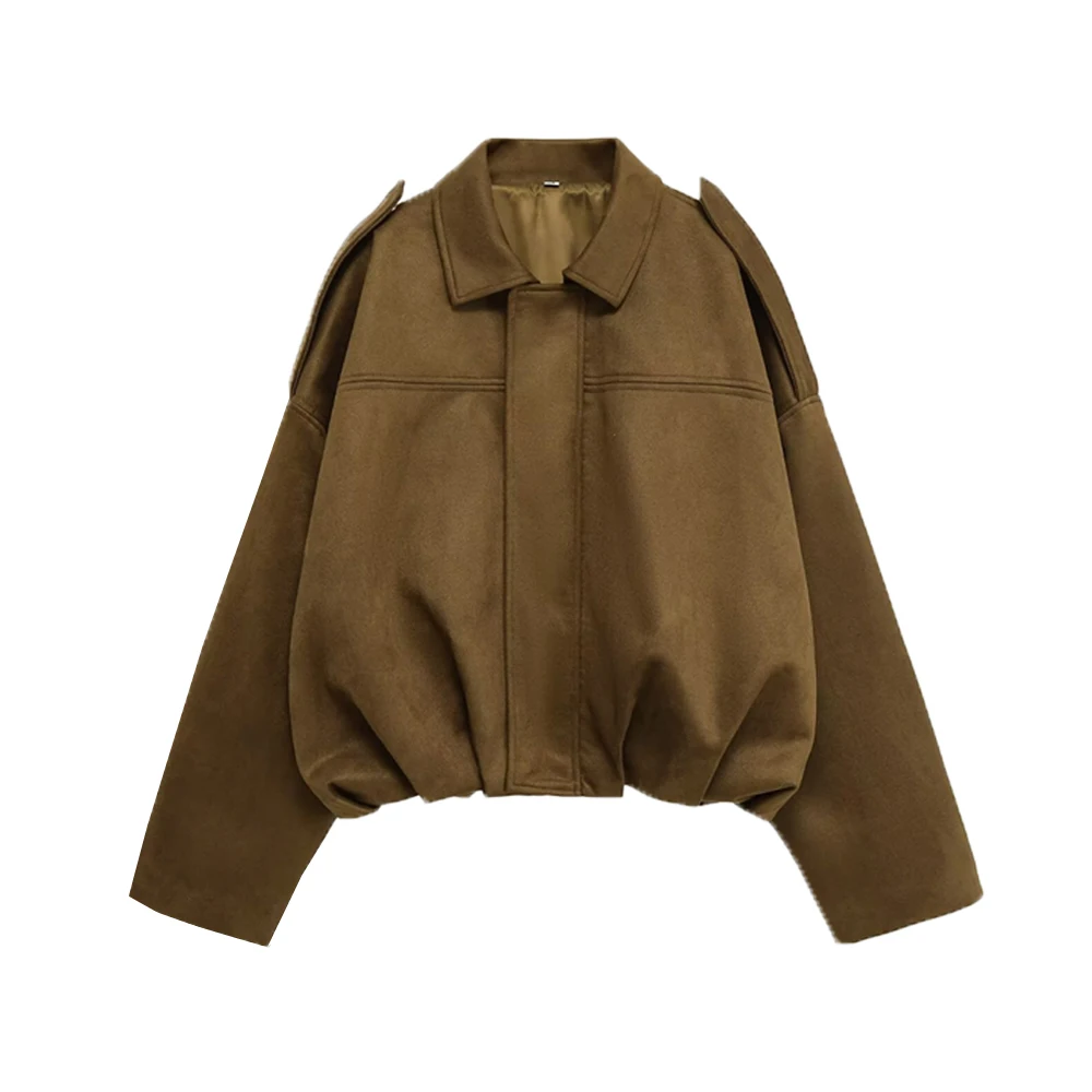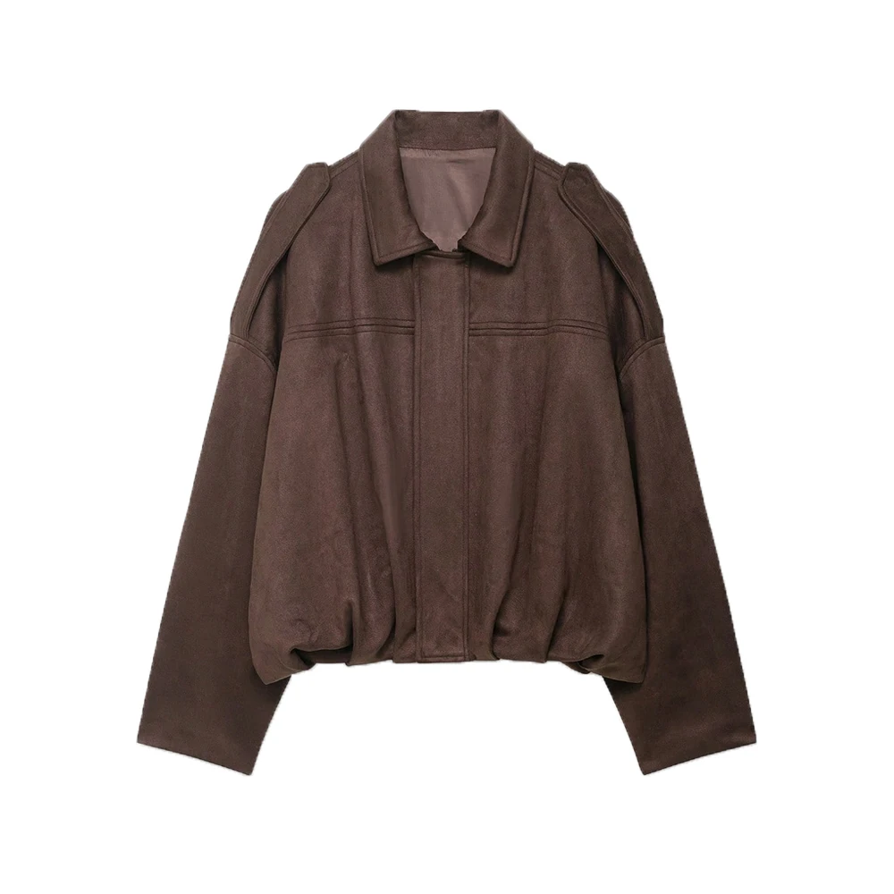 Giacca bomber oversize da donna in finta pelle scamosciata a maniche lunghe, capispalla chic e larghi, top alla moda femminile per la primavera, l’autunno, l’inverno