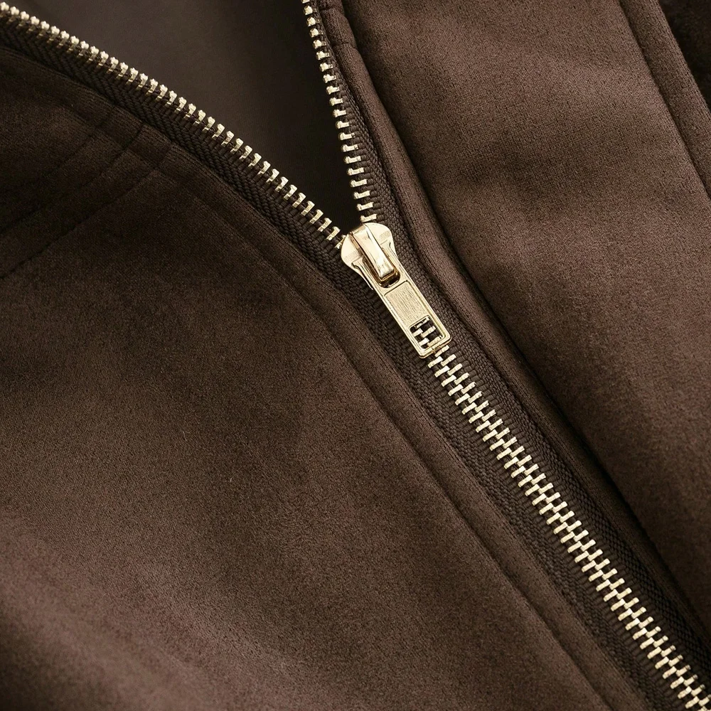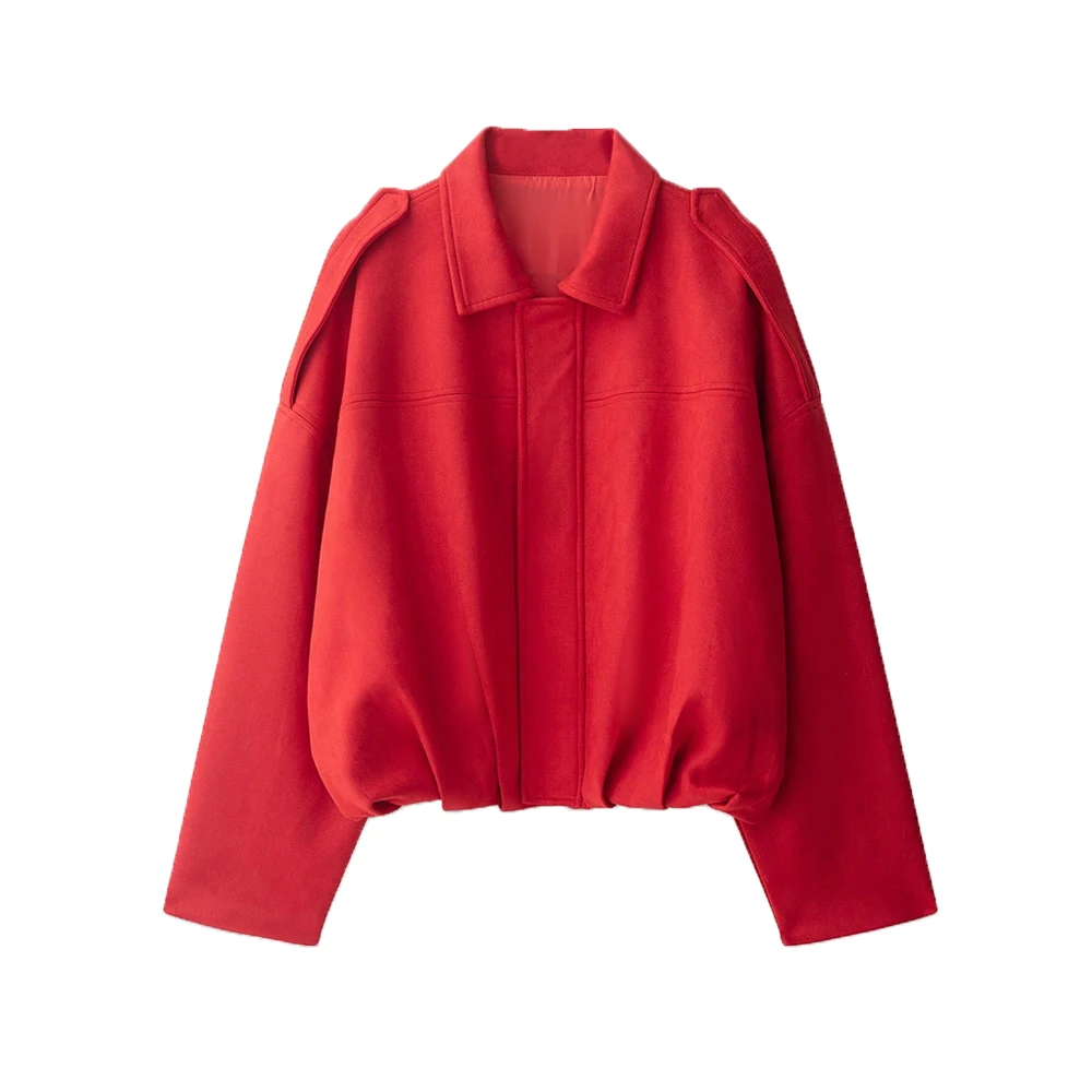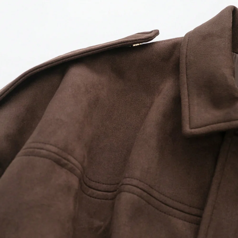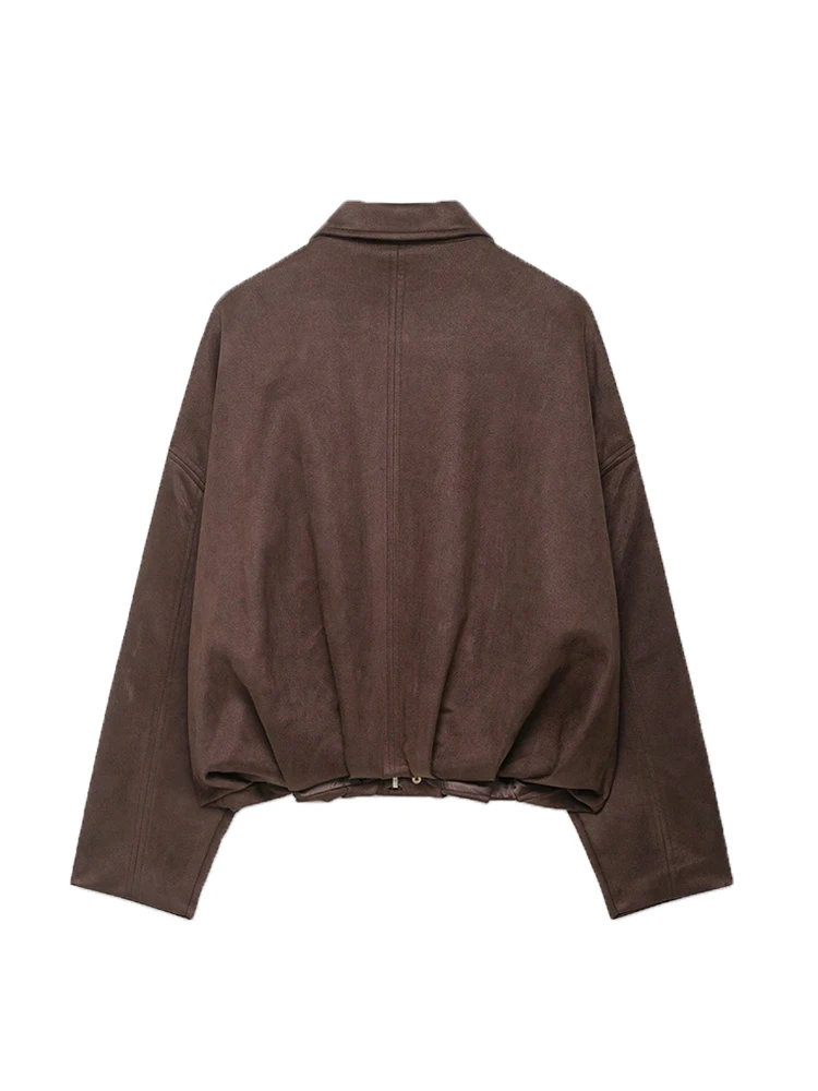 Giacca bomber oversize da donna in finta pelle scamosciata a maniche lunghe, capispalla chic e larghi, top alla moda femminile per la primavera, l’autunno, l’inverno
