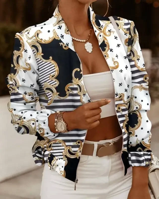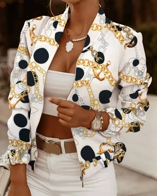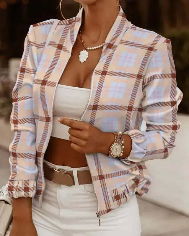 Giacca cardigan con cerniera e collo alto in tinta unita a maniche lunghe da pendolare da donna autunnale e giacca casual stampata alla moda