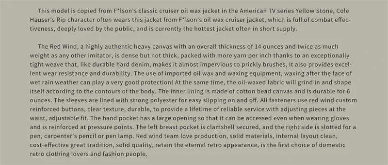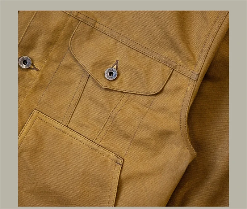 Ottimo prodotto, materiali di qualità. Praticamente identico al Filson, le tasche hanno persino la morbida fodera interna. Lo ho anche in nero e entrambe le taglie sono perfette. Sono alto 171 cm e peso 77 kg con circa il 15% di grasso corporeo, e la taglia M mi sta perfettamente.