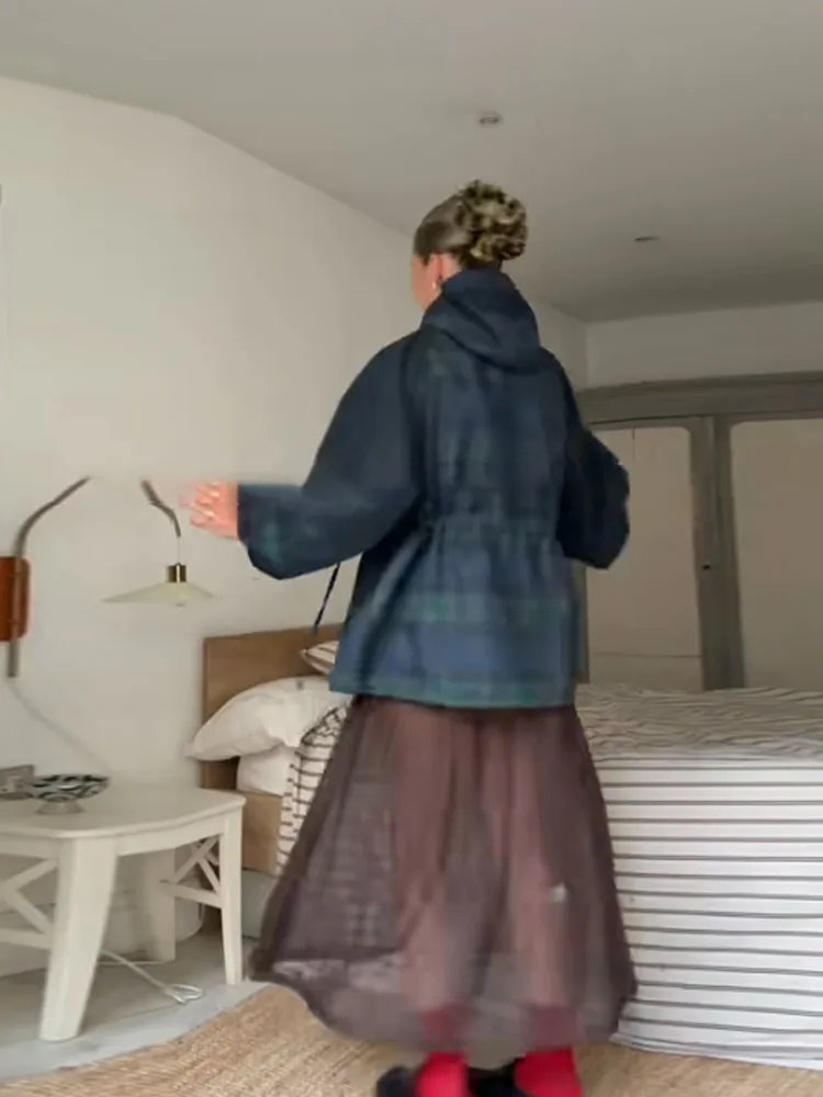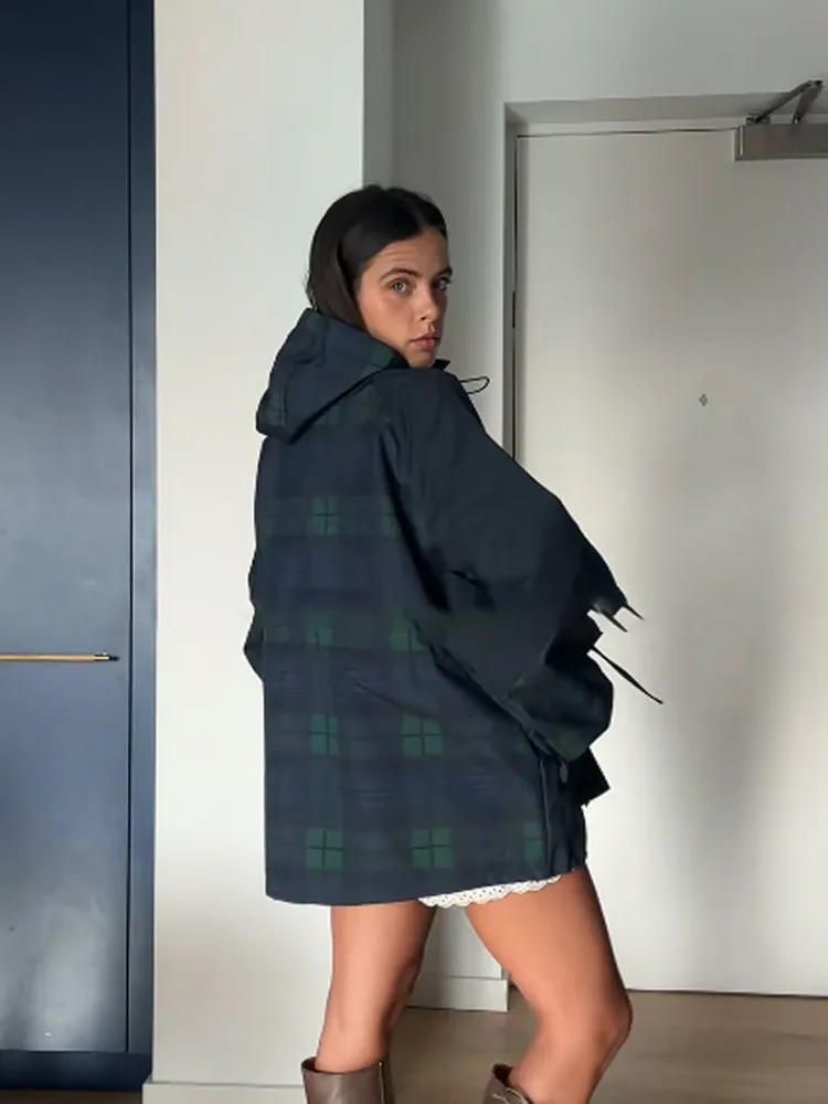 Giacca da donna allentata con griglia vintage Cappotto con colletto allentato oversize con cappuccio a maniche lunghe Capispalla con lacci 2025 New Lady Streetwears
