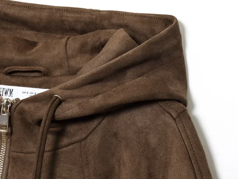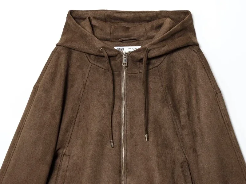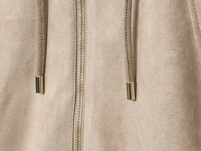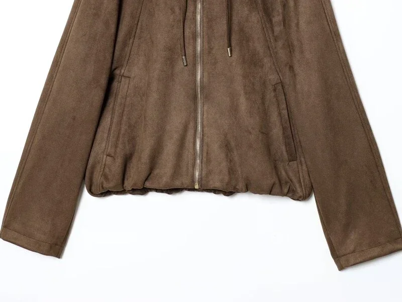 Giacca da pilota con cappuccio da donna Cappotto con cerniera calda con superficie in pelle scamosciata Top casual con cappuccio alla moda a maniche lunghe e vestibilità ampia