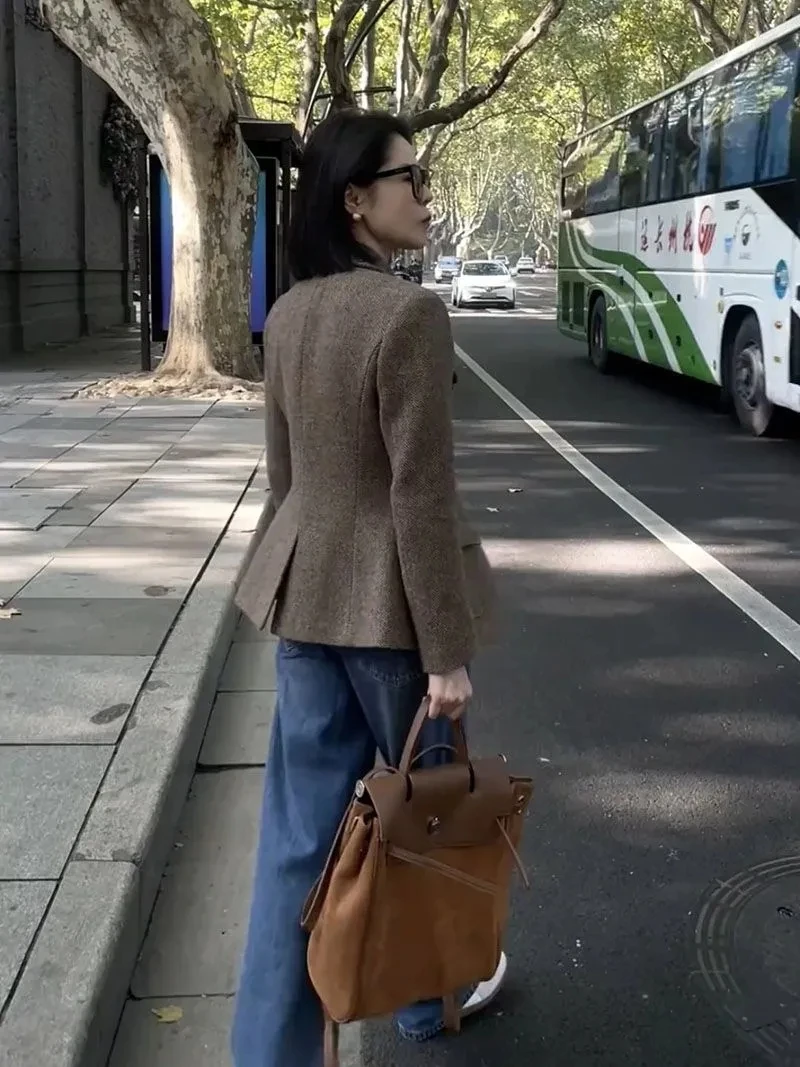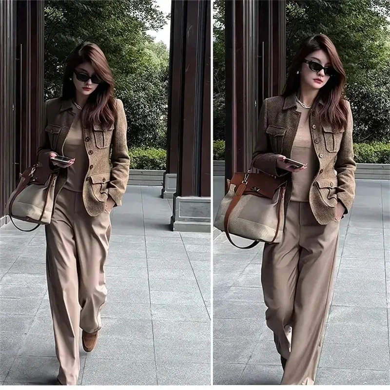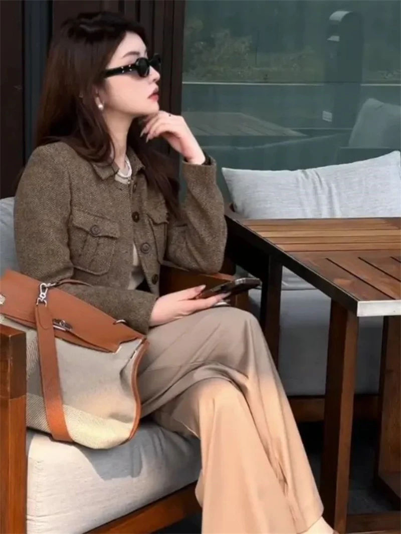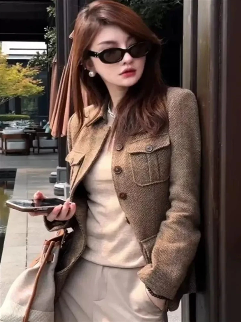 Giacca di lana da donna 2025 Autunno Inverno Retro Slim High End Cappotto corto femminile Moda Comodo temperamento Cappotto da donna