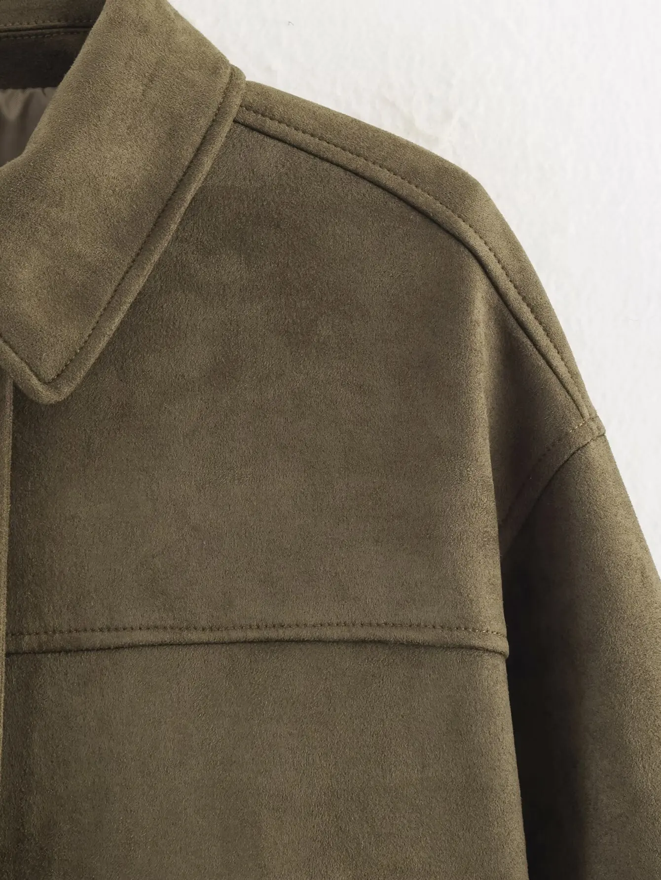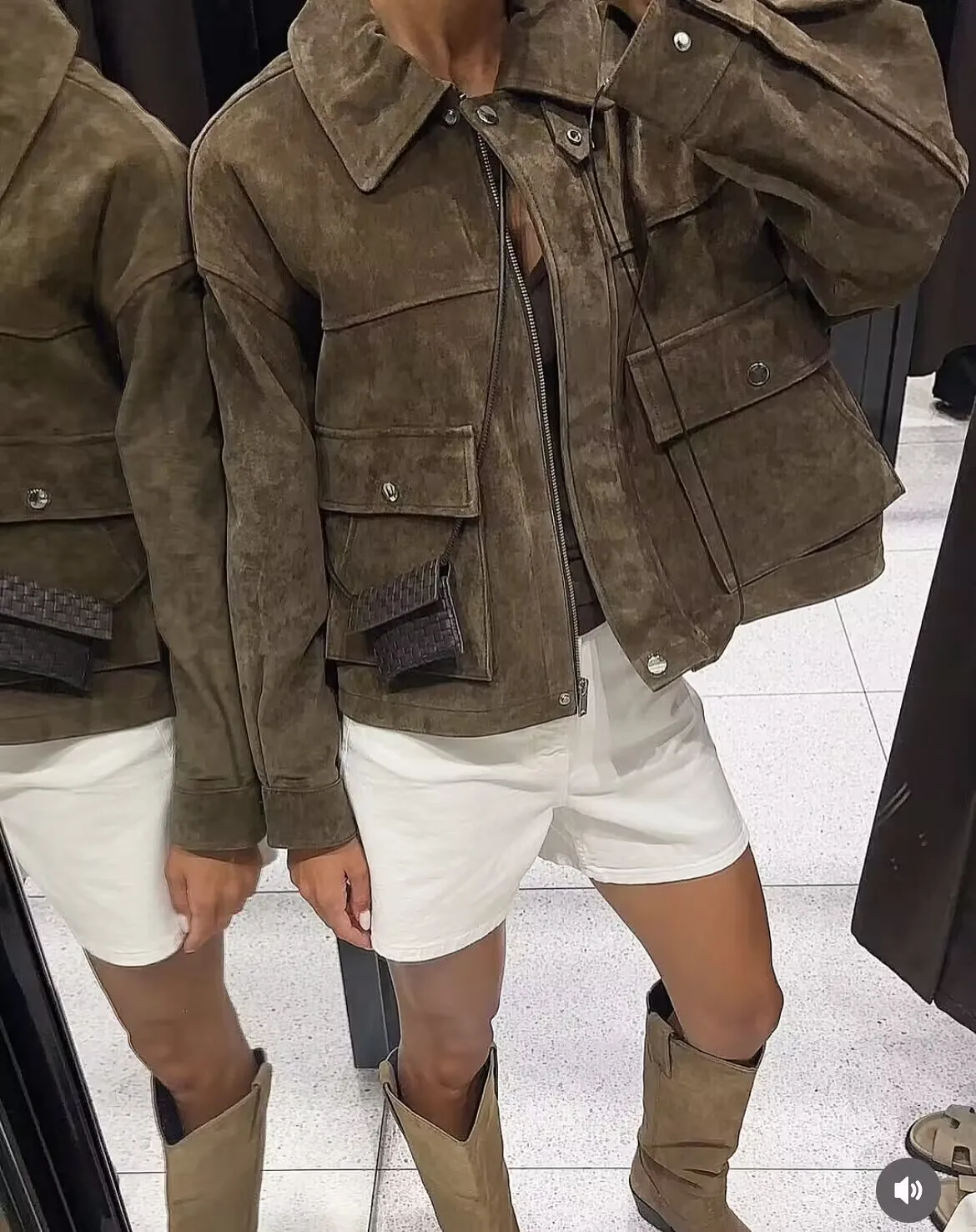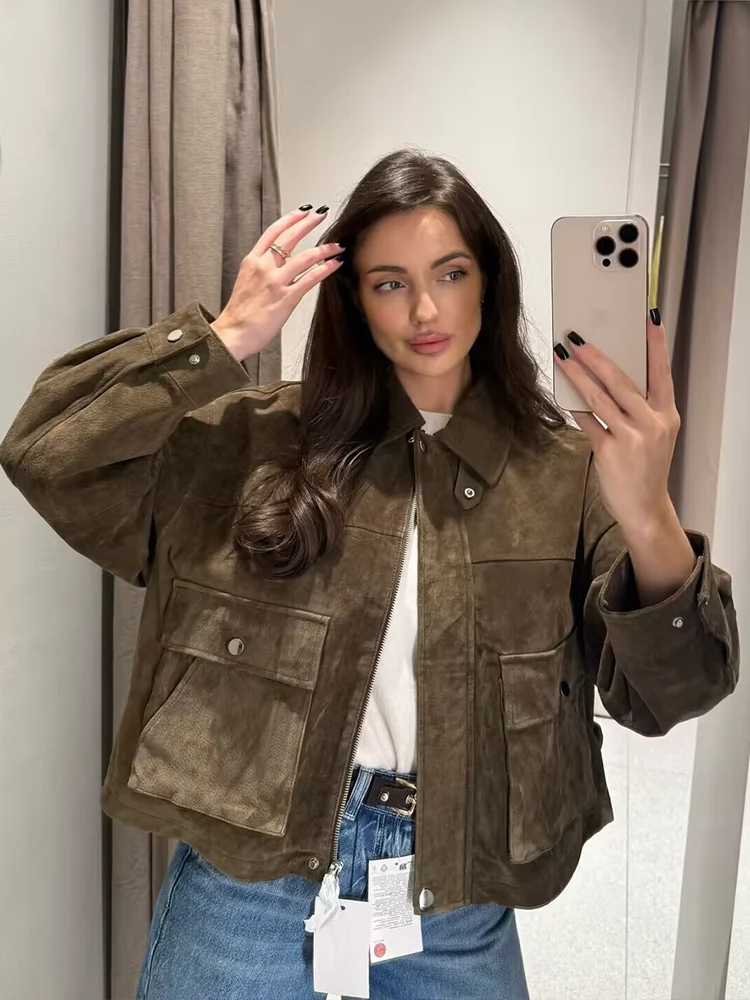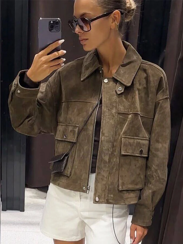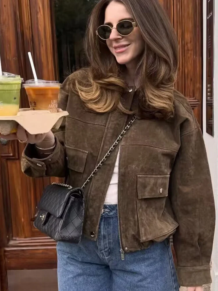 Recensisci per primo “Giacca in pelle scamosciata da donna 2025 Nuove donne Moda manica lunga con cerniera Giacche in pelle scamosciata Donna Autunno Inverno High Street Cappotti corti”