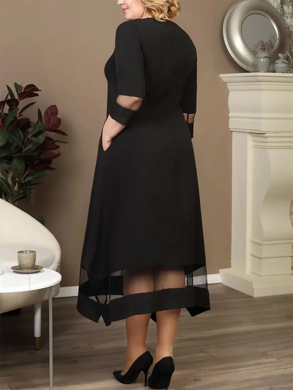 1 recensione per GIBSIE Plus Size nero contrasto maglia Splicing abito lungo donna estate o-collo manica 3/4 elastico lavorato a maglia eleganti abiti a trapezio