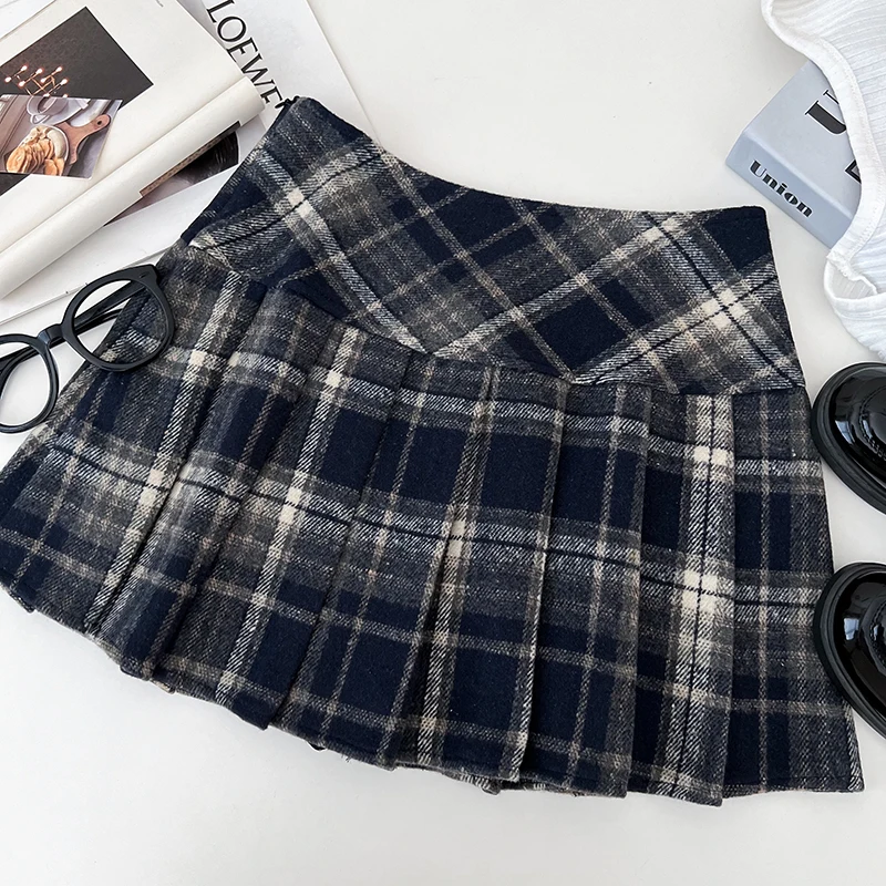 Gonna a pieghe scozzese autunno inverno Minigonna classica in tartan rosso di lana spessa da donna Abito natalizio Saia Feminina classico