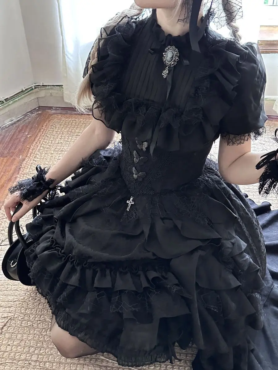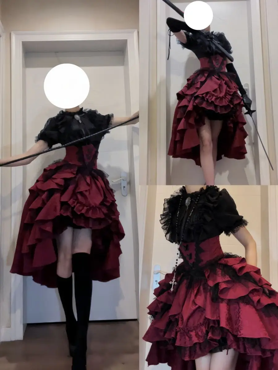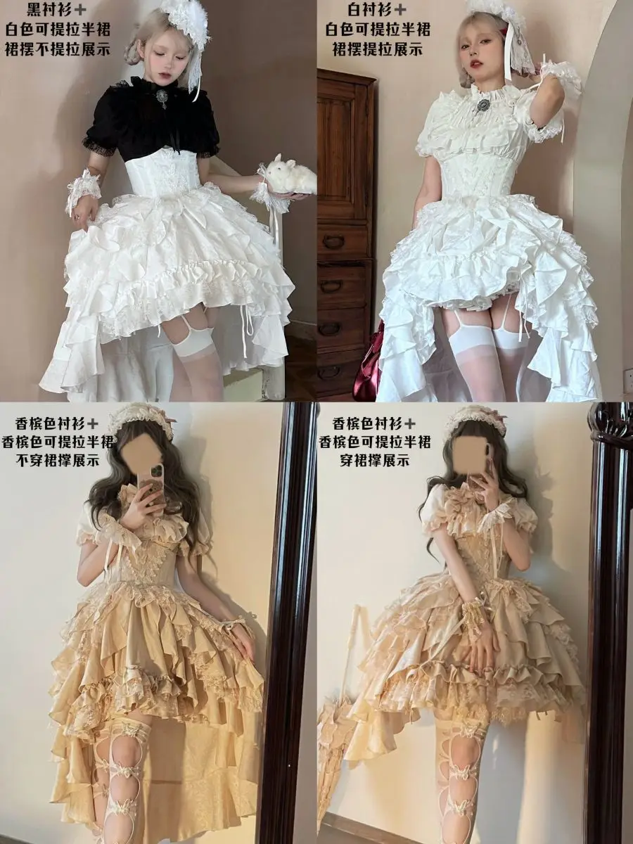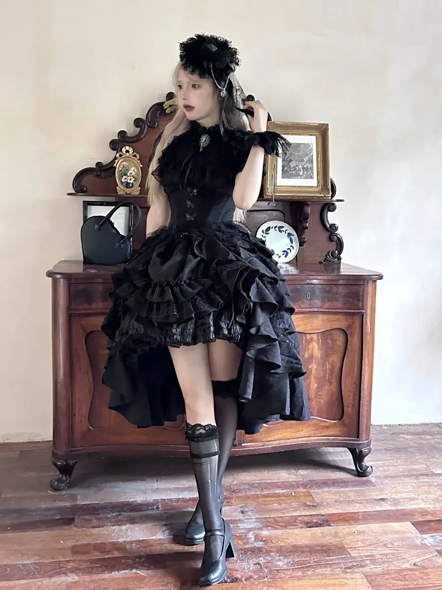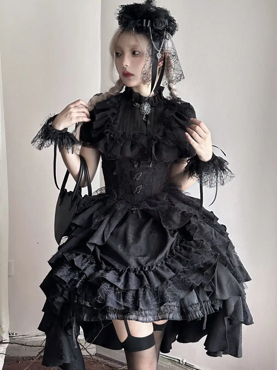 Gonna a vita alta Lolita in stile gotico scuro giapponese Primavera e autunno Nuove ragazze dolci e carine Gonne gonfie versatili in tinta unita