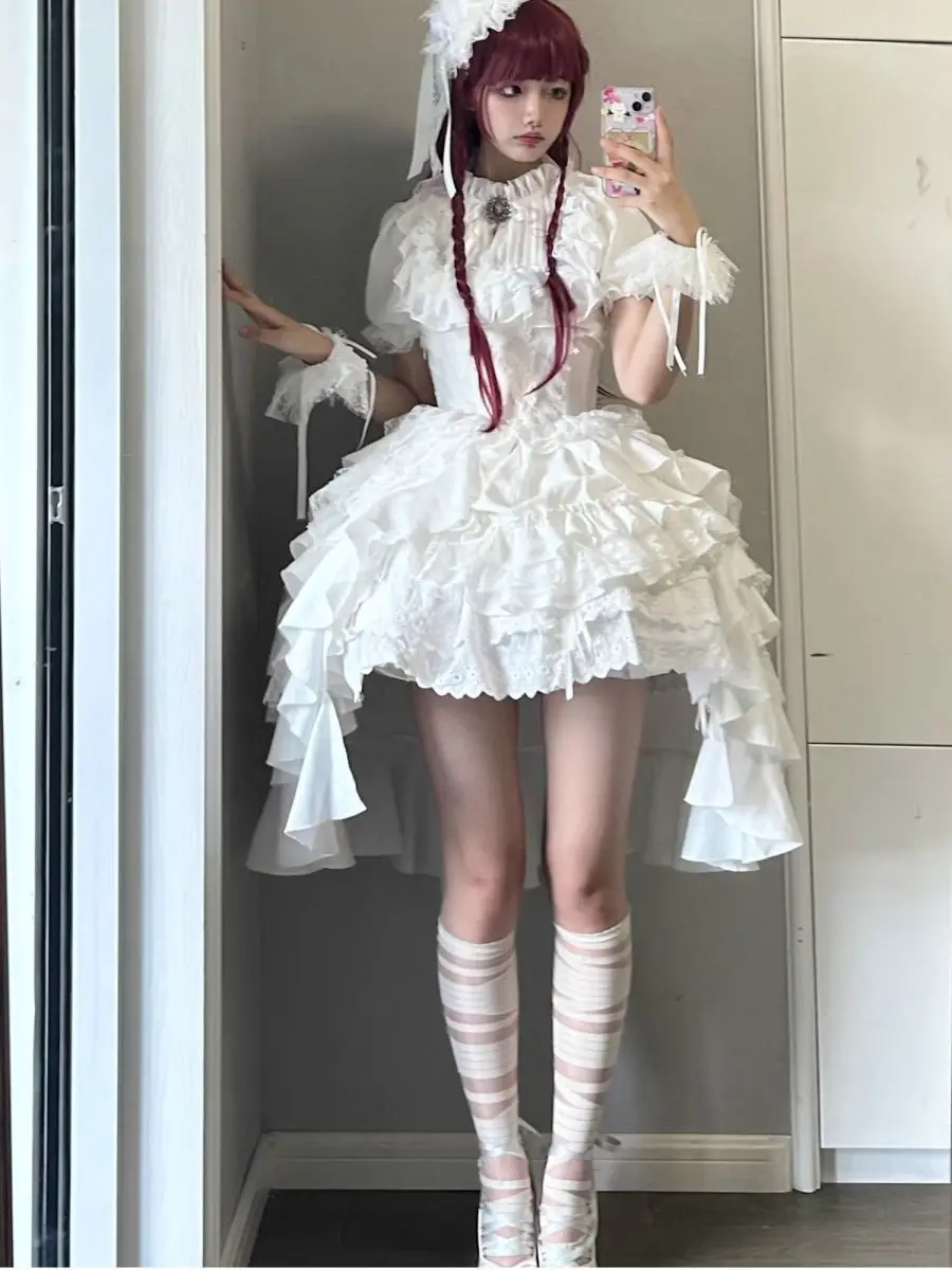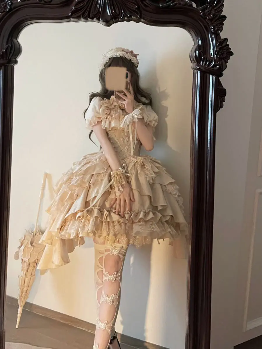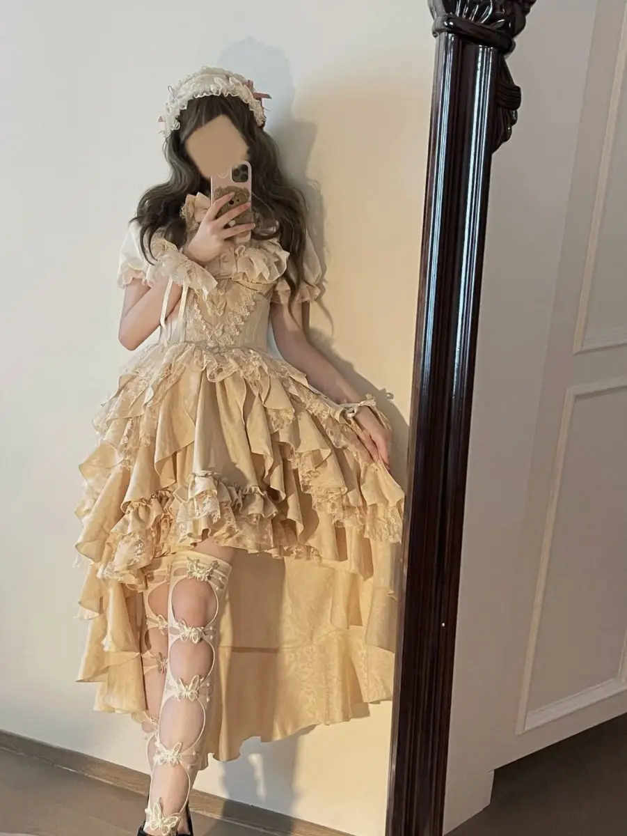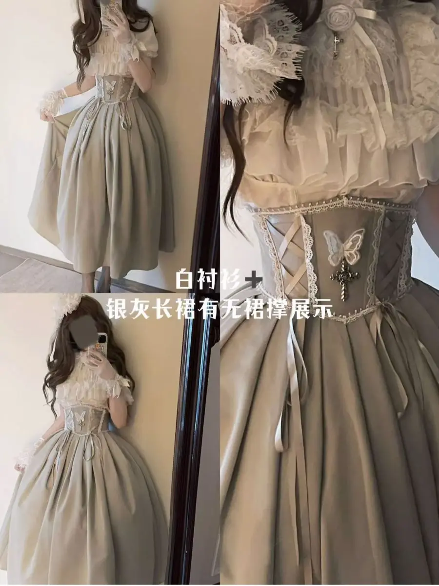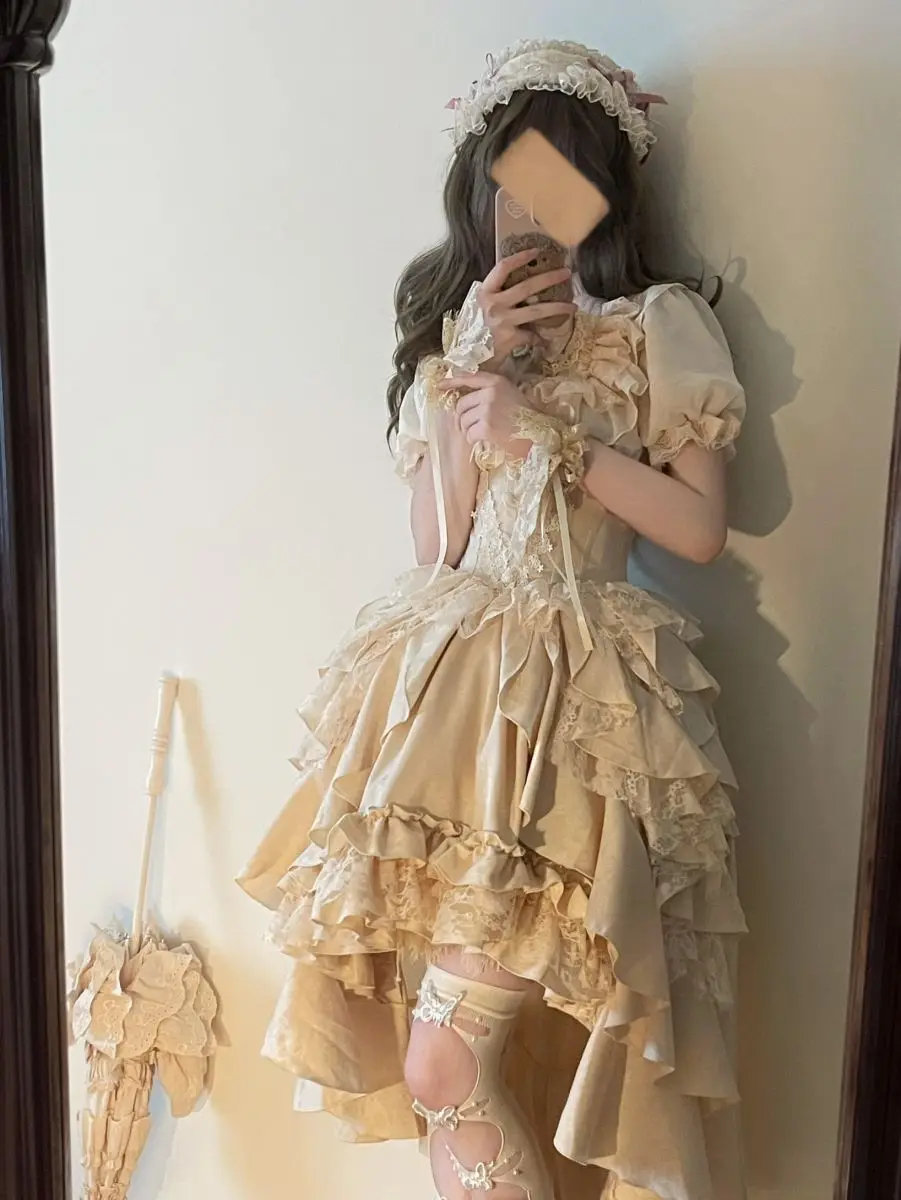 Gonna a vita alta Lolita in stile gotico scuro giapponese Primavera e autunno Nuove ragazze dolci e carine Gonne gonfie versatili in tinta unita