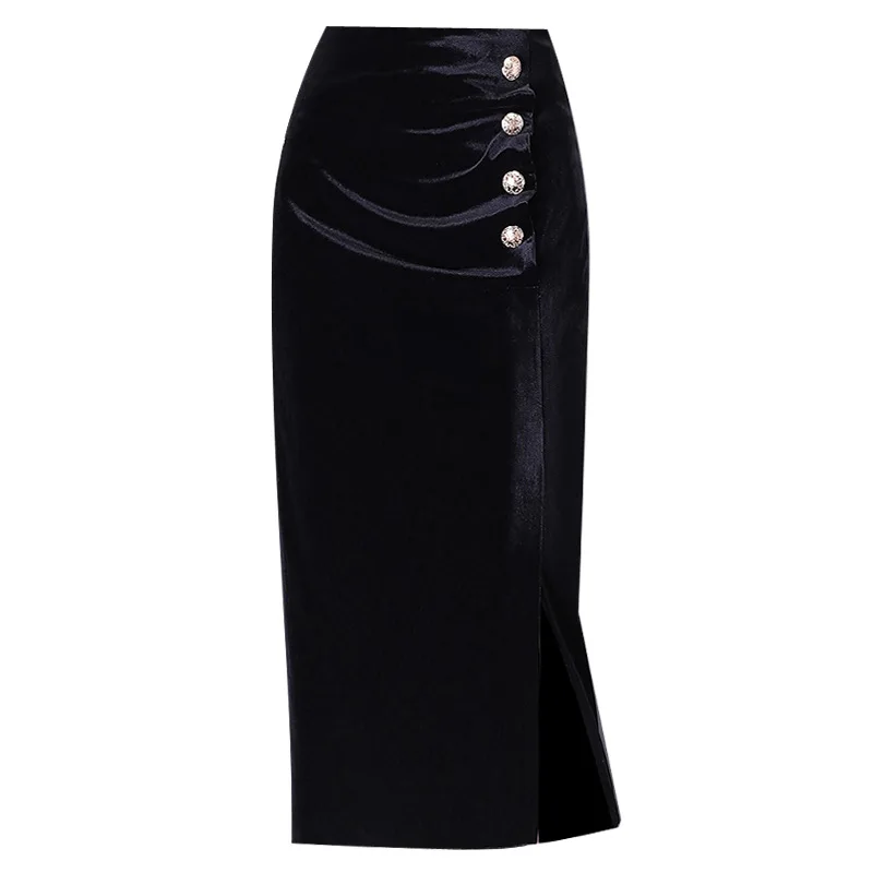 Gonna avvolgente di media lunghezza in velluto dorato per donna con spacco laterale Elegante tessuto in poliestere stile pendolare d’affari aderente