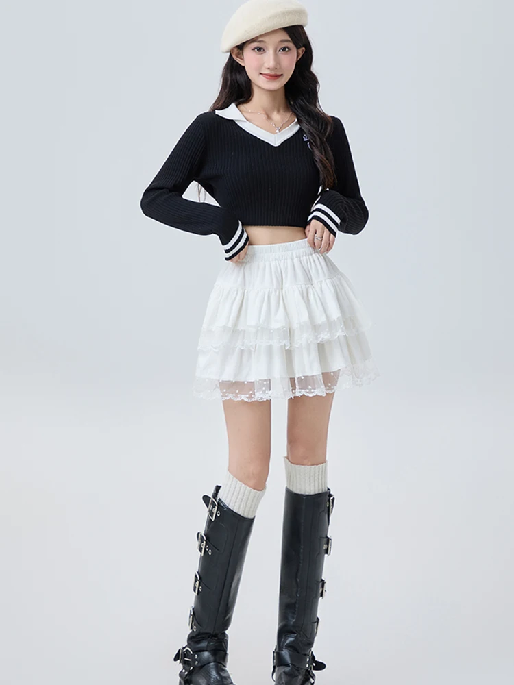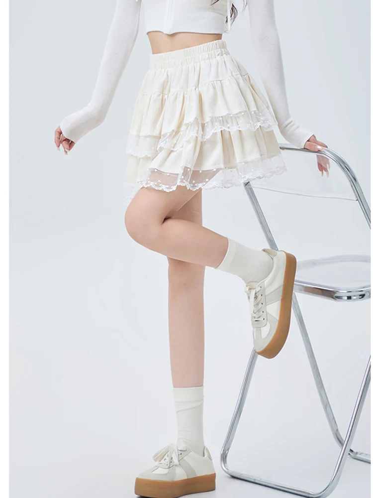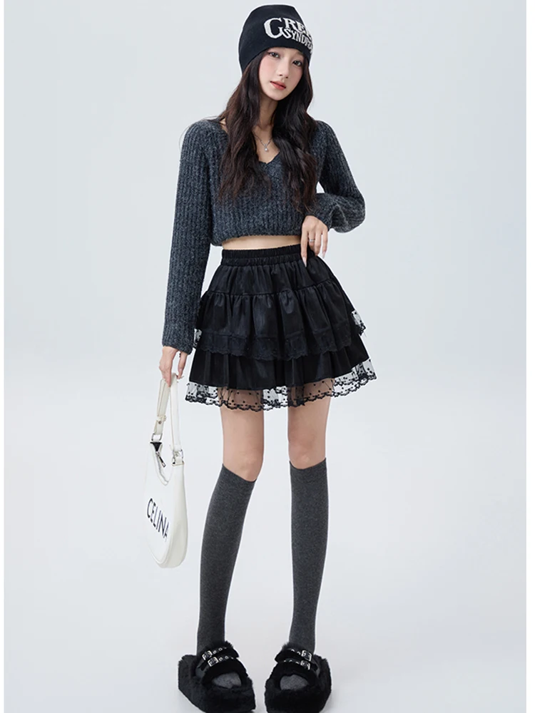 1 recensione per Gonna da balletto Y2K da donna in velluto con design a torta a vita alta soffice corto in pizzo vestibilità slim autunno inverno abbigliamento da festa