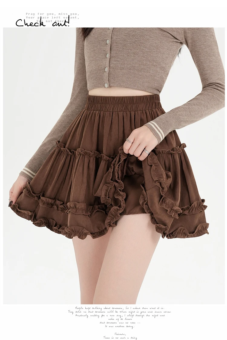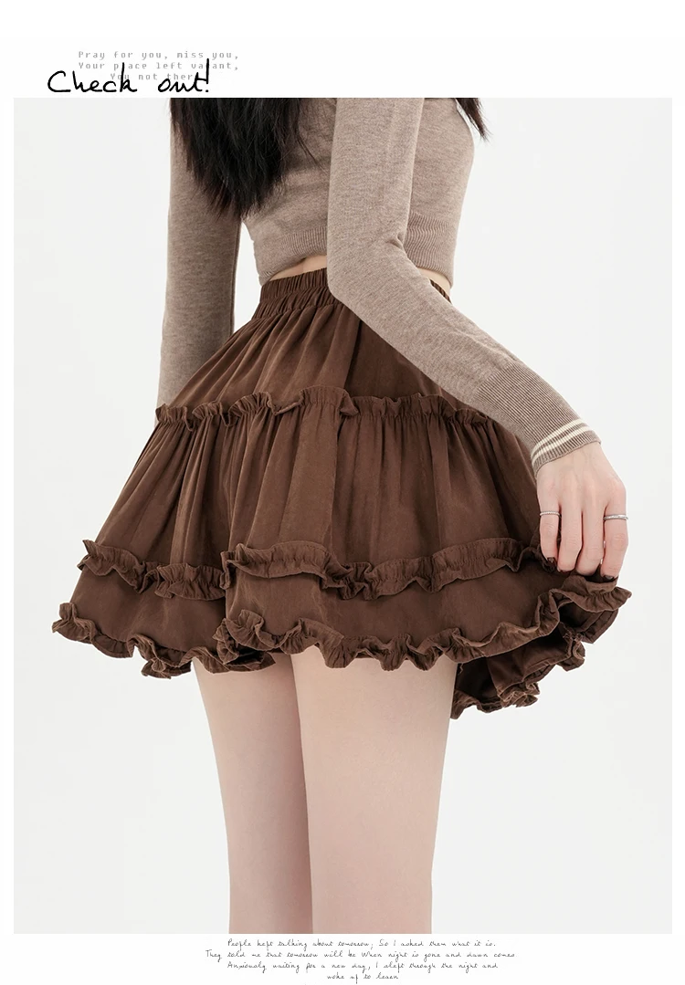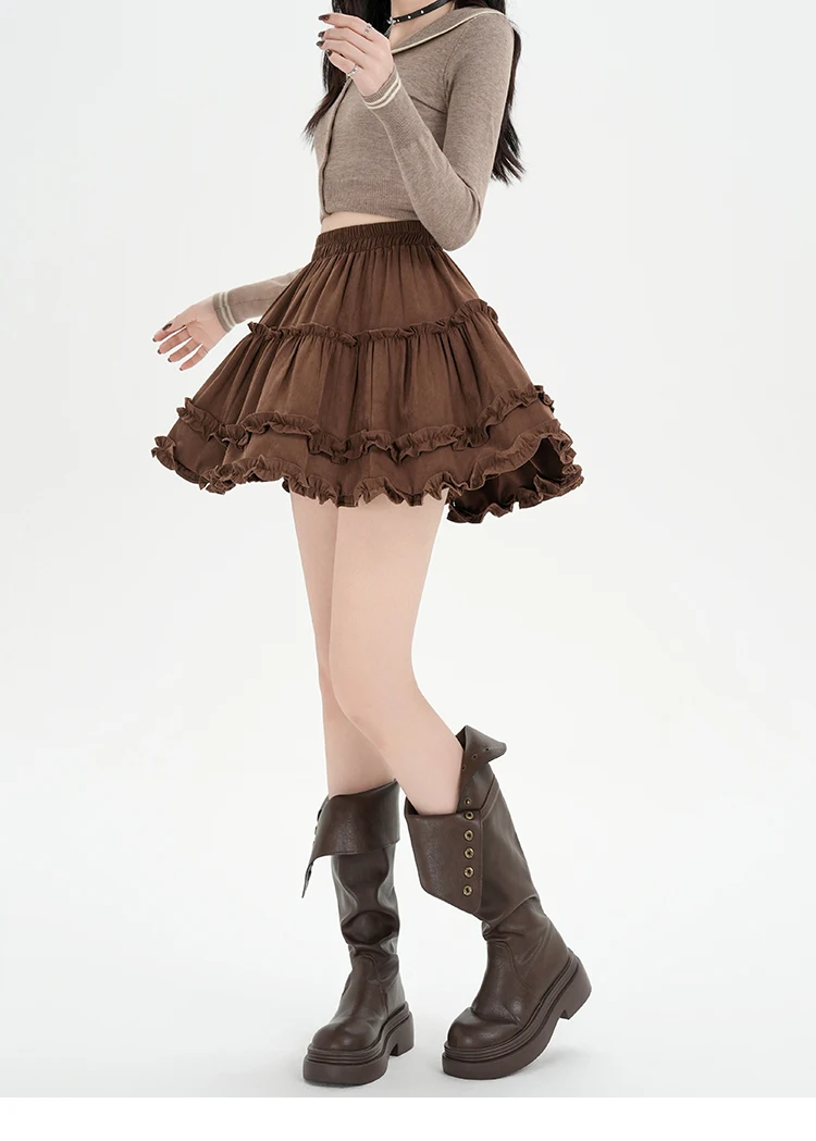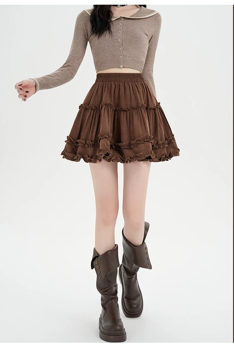 Gonna in pelle a trapezio marrone da donna Gonna a pieghe estetica vintage Y2k Harajuku Minigonna gotica coreana Emo 2000s Abbigliamento autunno