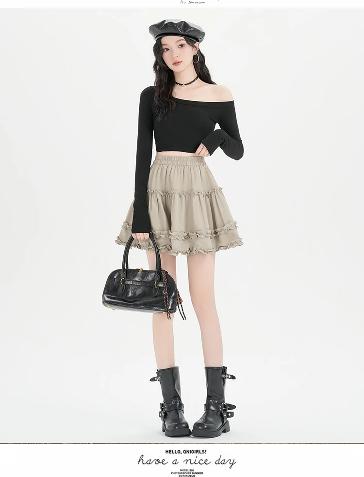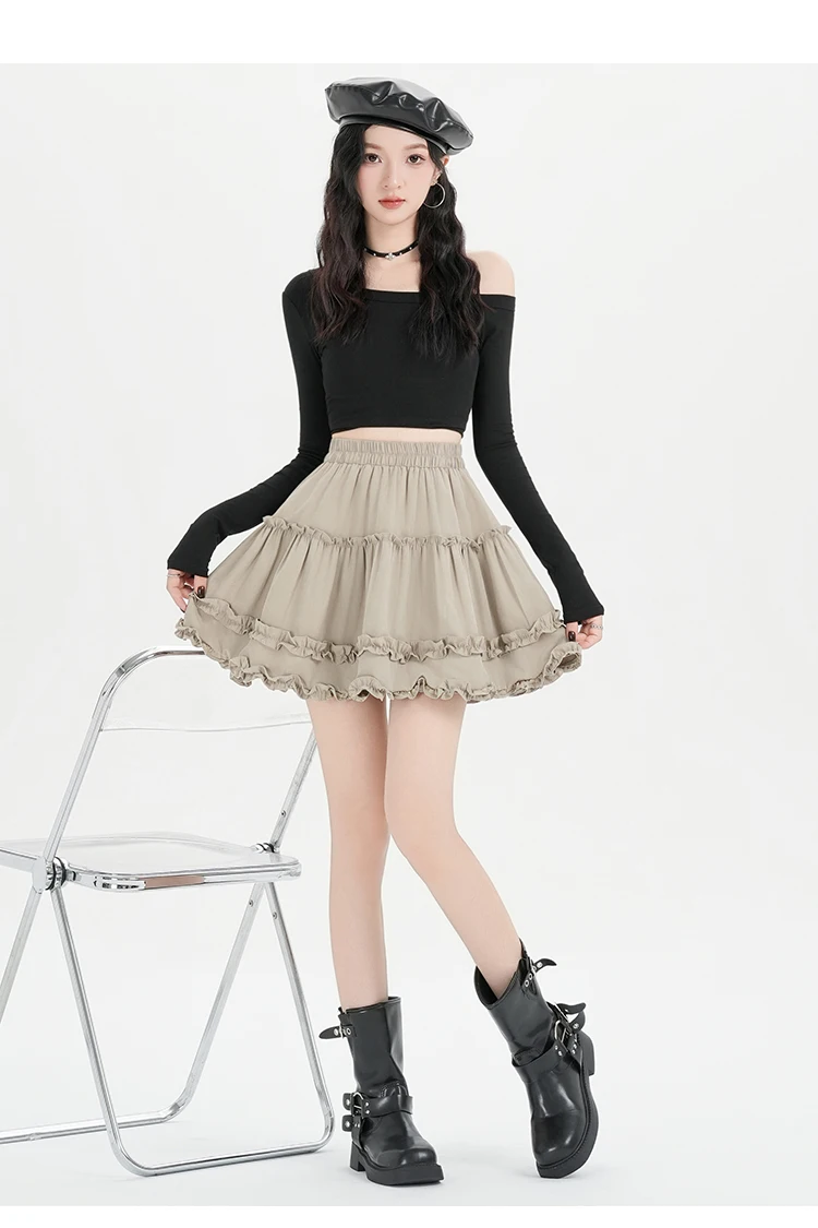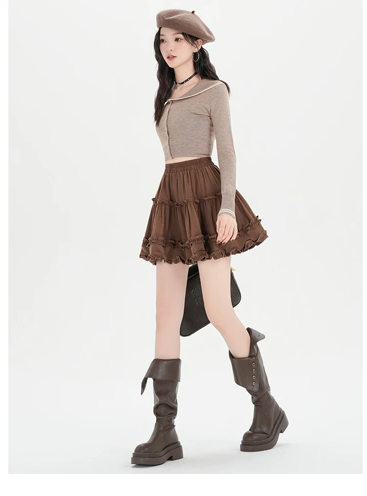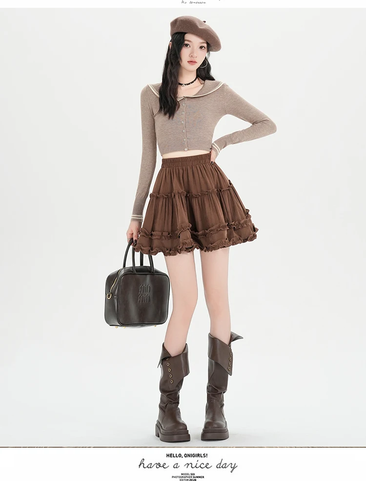 Gonna in pelle a trapezio marrone da donna Gonna a pieghe estetica vintage Y2k Harajuku Minigonna gotica coreana Emo 2000s Abbigliamento autunno