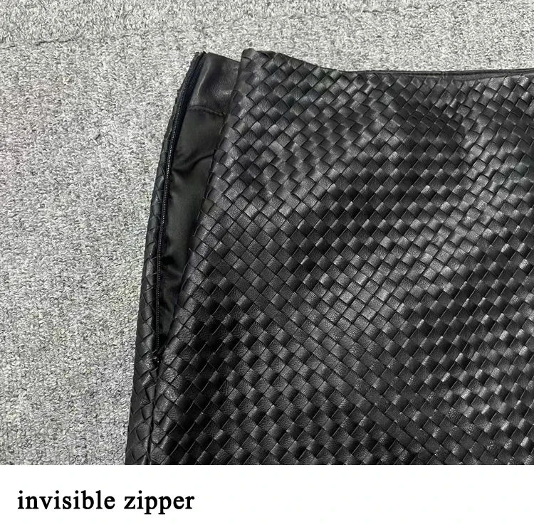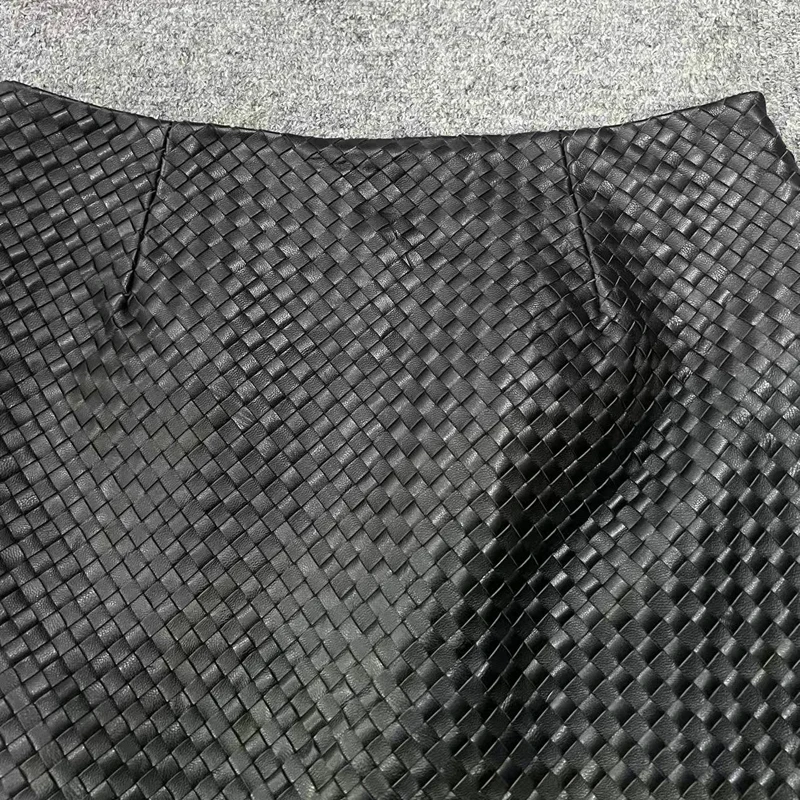 Gonna in pelle lavorata a maglia per donna Primavera Nuova vera pelle di pecora di fascia alta