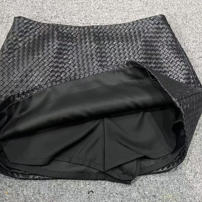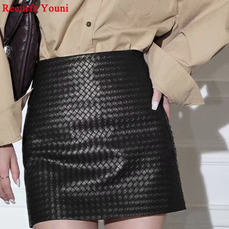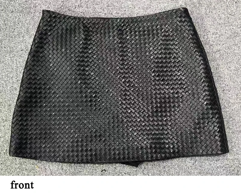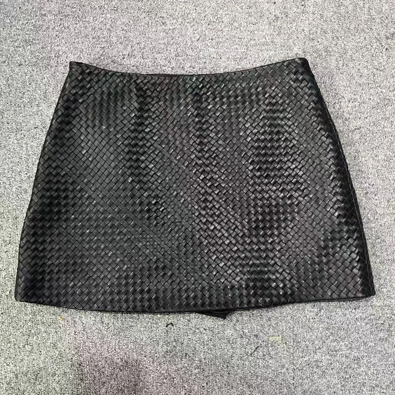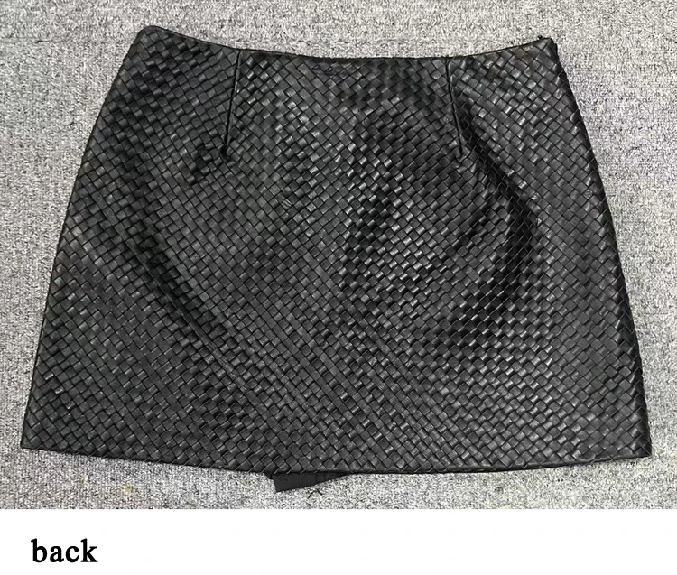 Gonna in pelle lavorata a maglia per le donne Primavera Nuova pelle di pecora genuina di fascia alta Semplice versatile A-line corta Jupe Mujer Tessuto a mano Saias