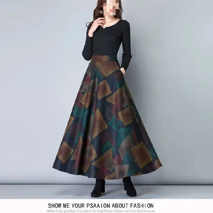 Gonna longuette a righe scozzesi autunno inverno Gonna longuette retrò da donna taglie forti a vita alta snellente Gonna lunga impreziosita da fiori