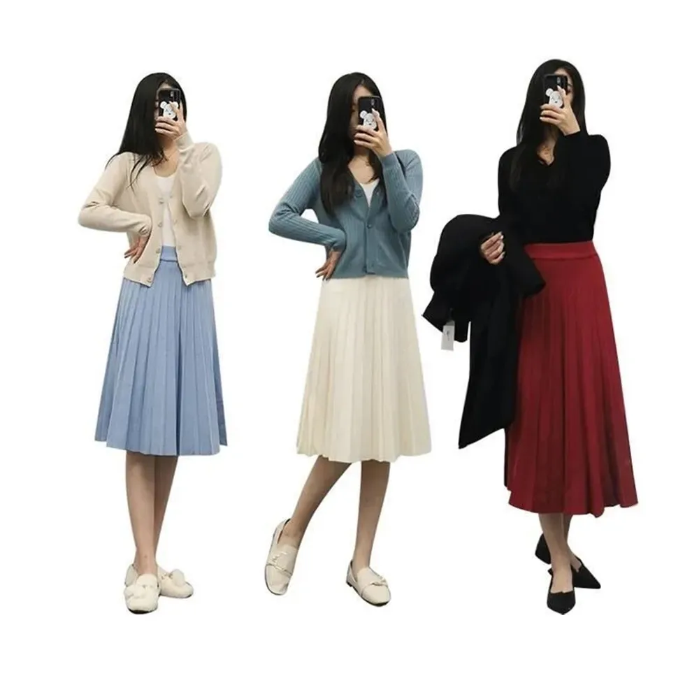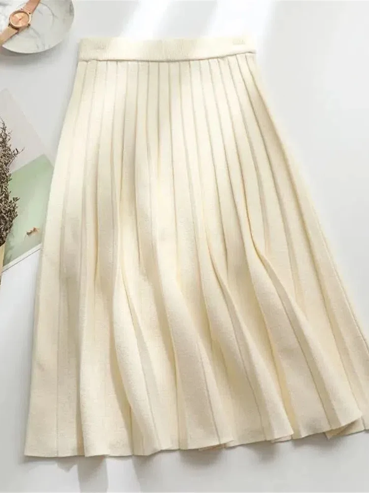 Gonna longuette lavorata a maglia da donna elegante gonna lunga a pieghe a vita alta nera coreana 2024 primavera autunno inverno Faldas Femme Jupes