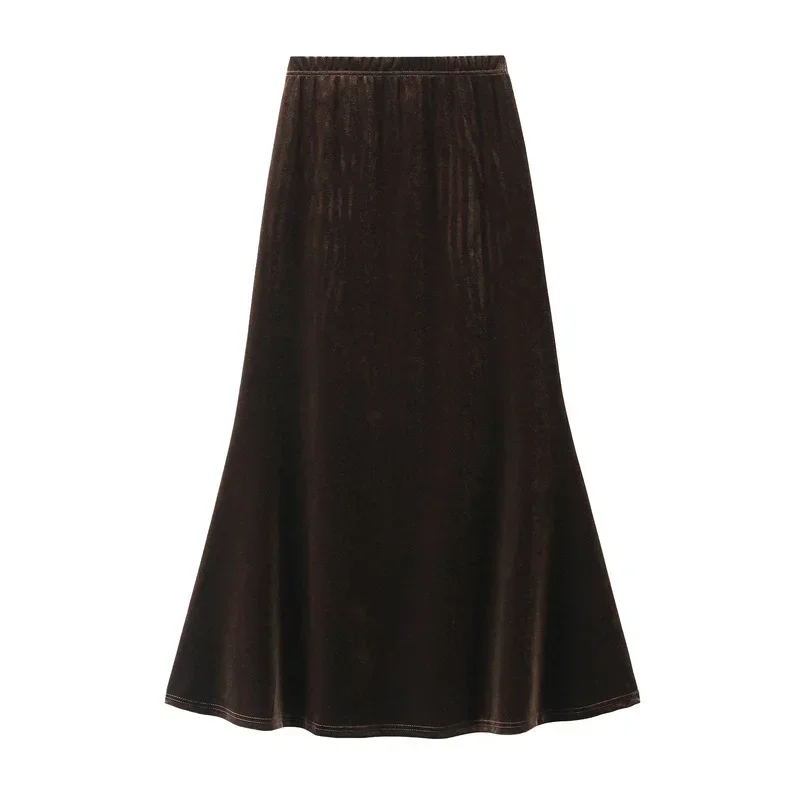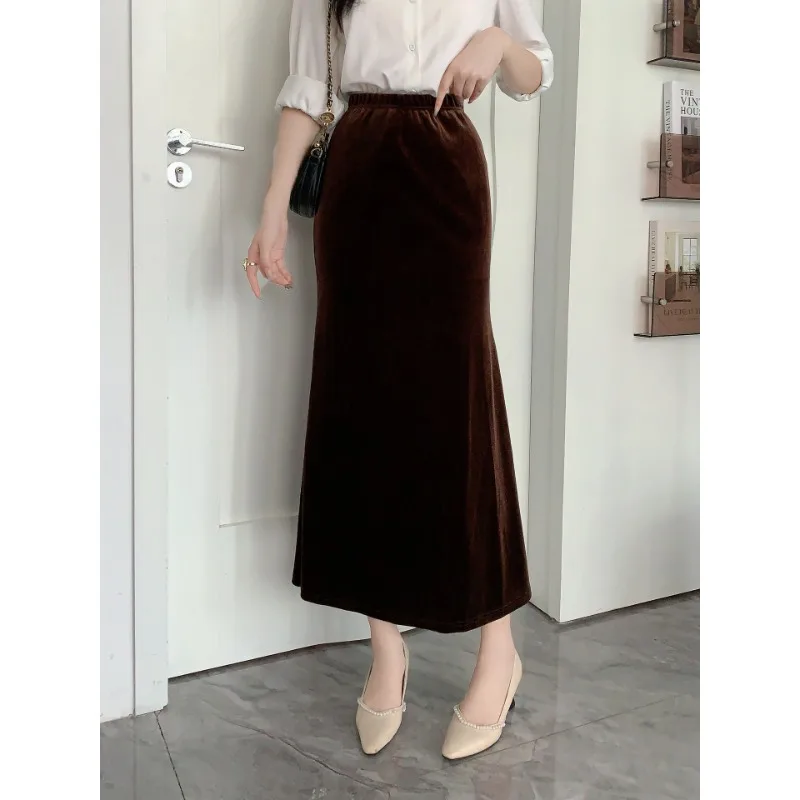 Gonna lunga a vita alta autunno inverno donna gonne a sirena slim fit in velluto dorato vintage gonne longuette streetwear eleganti femminili