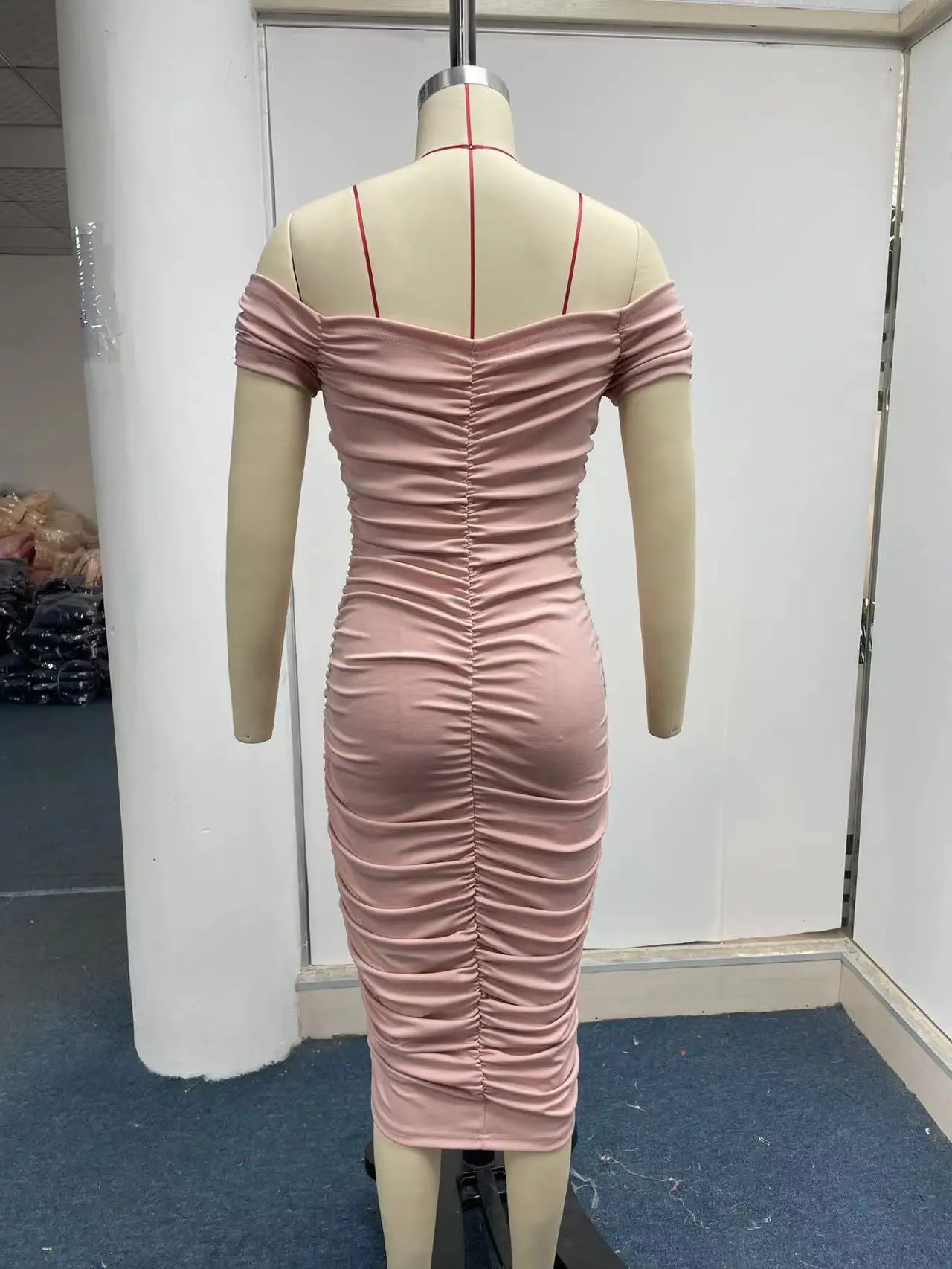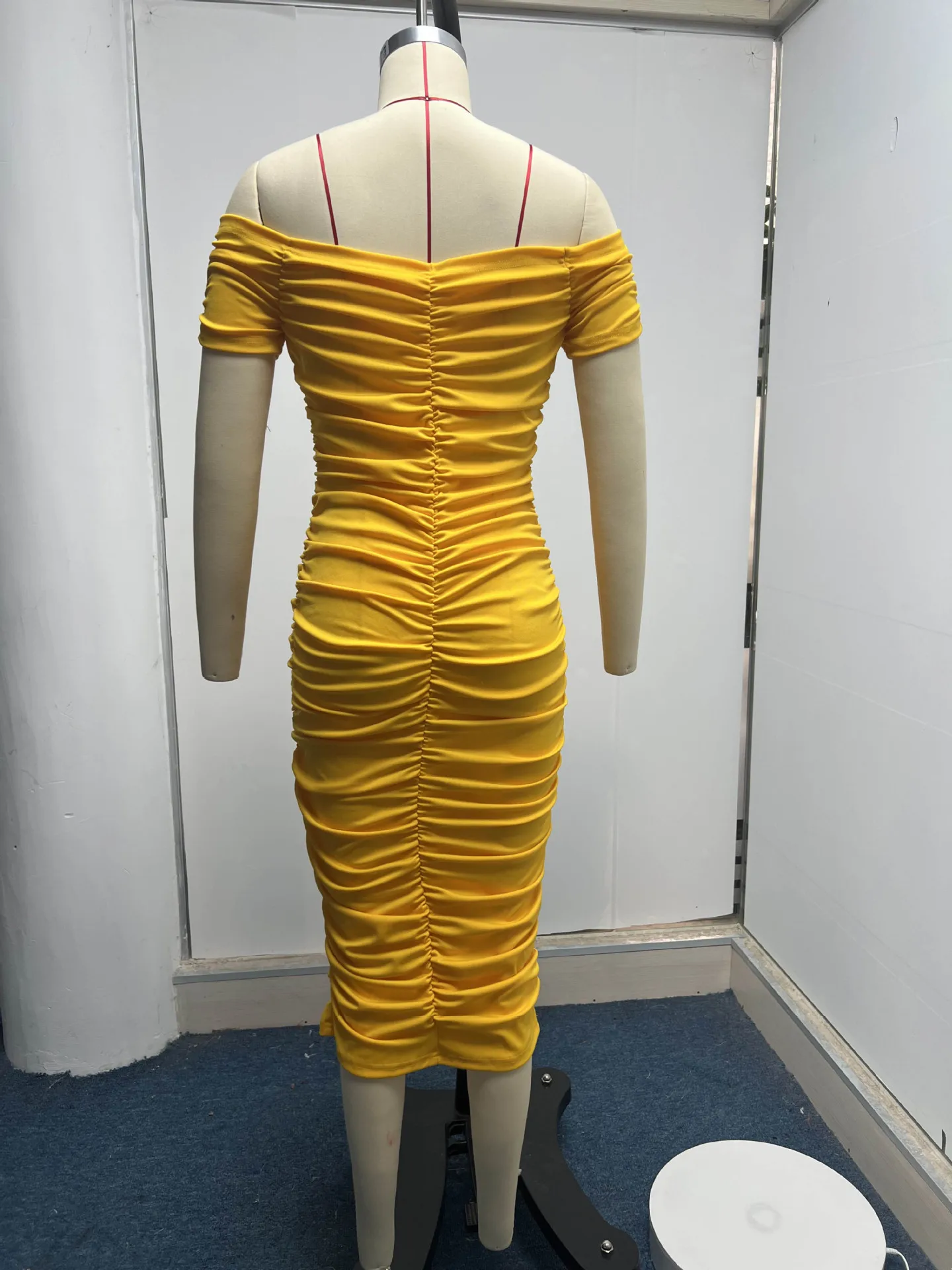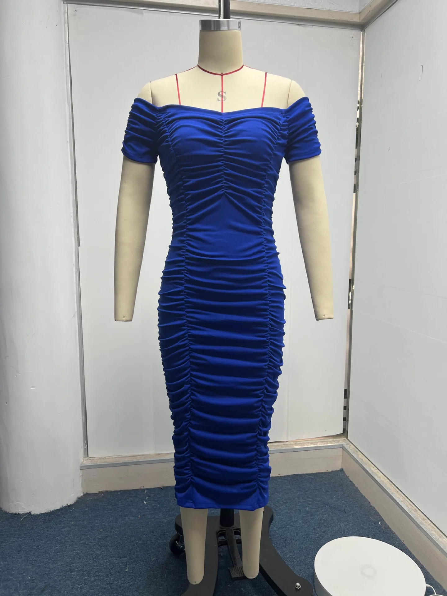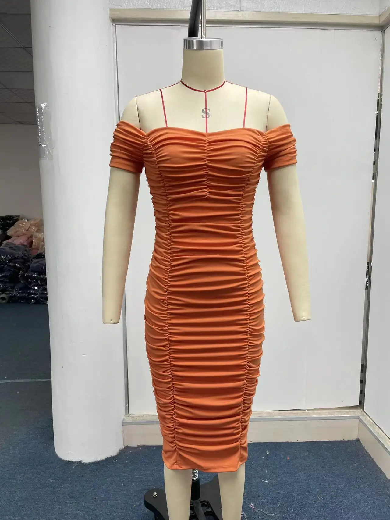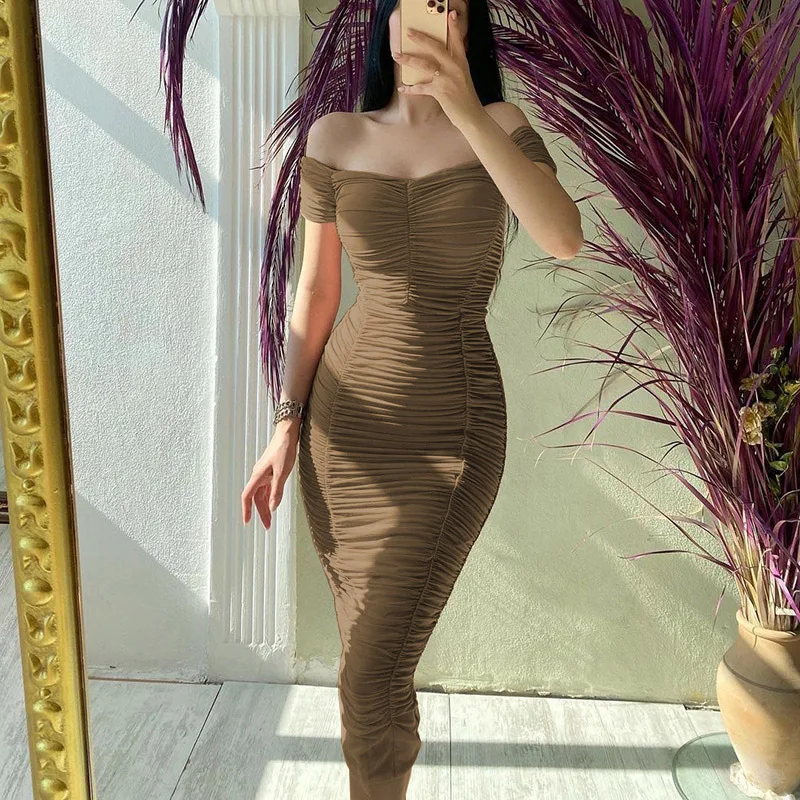 Gonna lunga tinta unita in stile europeo e americano, temperamento elegante, abito estivo da donna, abito plissettato con una spalla