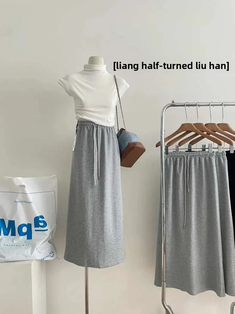 Gonna sportiva casual a gamba dritta a vita alta ispessita primavera autunno Gonna lunga a metà corpo divisa per donna