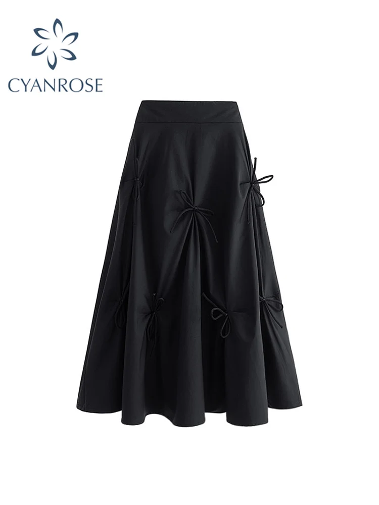 Gonne a pieghe Harajuku a vita alta per le donne Gonna a vita alta con fiocco 2022 Gonne eleganti alla moda Gonna longuette stile coreano