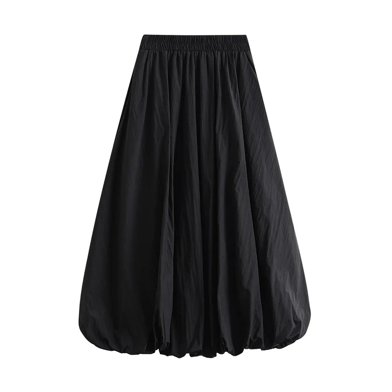 1 recensione per Gonne A sbuffo Lamuusaa donna estate 2024 tinta unita vita alta una linea gonna lunga con gemme A bolle eleganti gonne da donna Streetwear