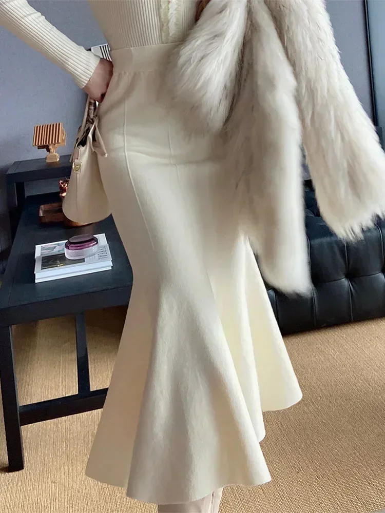 Gonne da donna 2025 Autunno Inverno Moda Gonne lunghe lavorate a maglia per le donne Verde Vintage Slim Office Lady A-LINE Gonna a coda di pesce